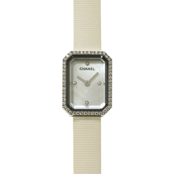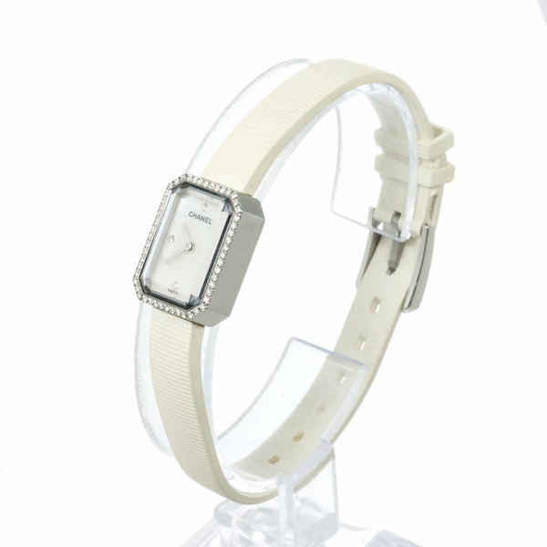 CHANEL Premiere H2433 Diamond Bezel Women\'s Watch with 4 Diamonds, White Shell, Rubber, and Quartz Movement
