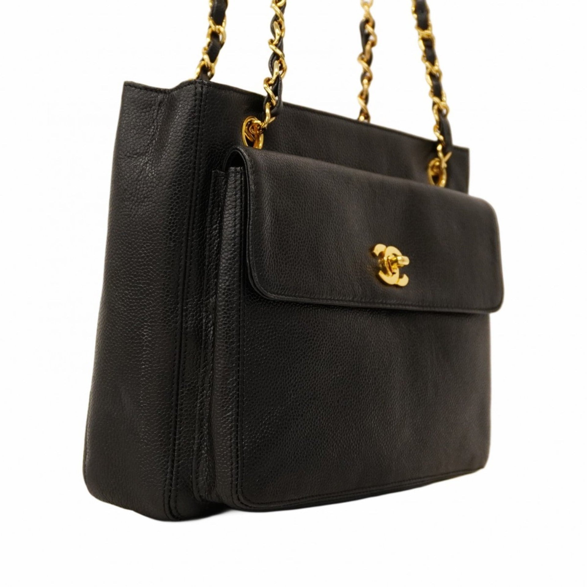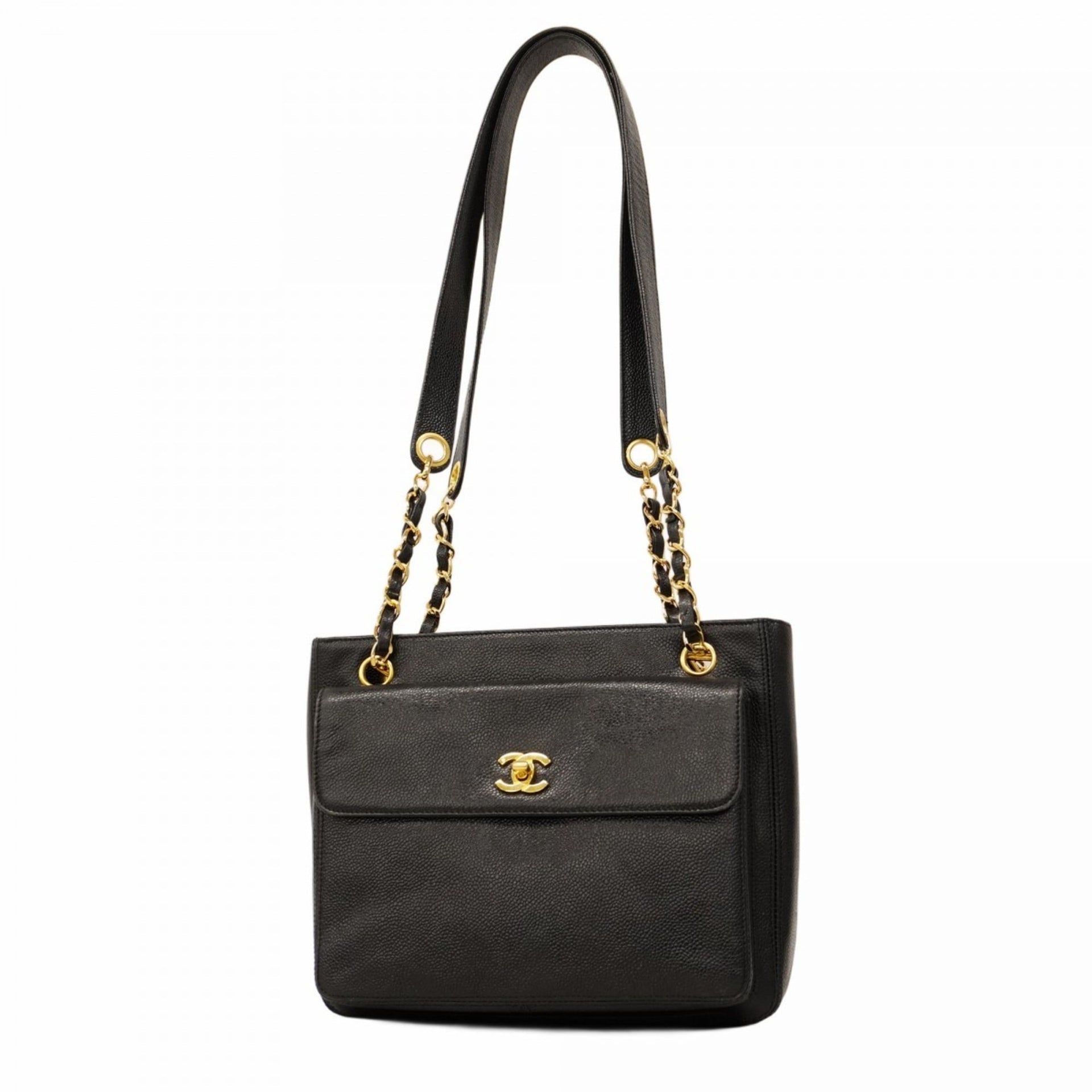 Chanel Shoulder Bag Chain Caviar Skin Black Women\'s