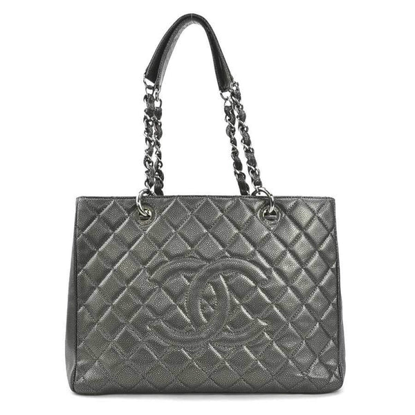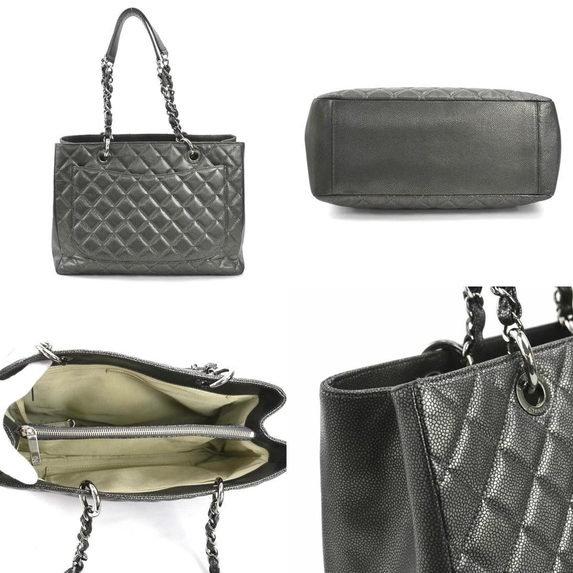 CHANEL Shoulder Bag GST Caviar Skin Leather Metallic Gray Silver Women\'s e59698a