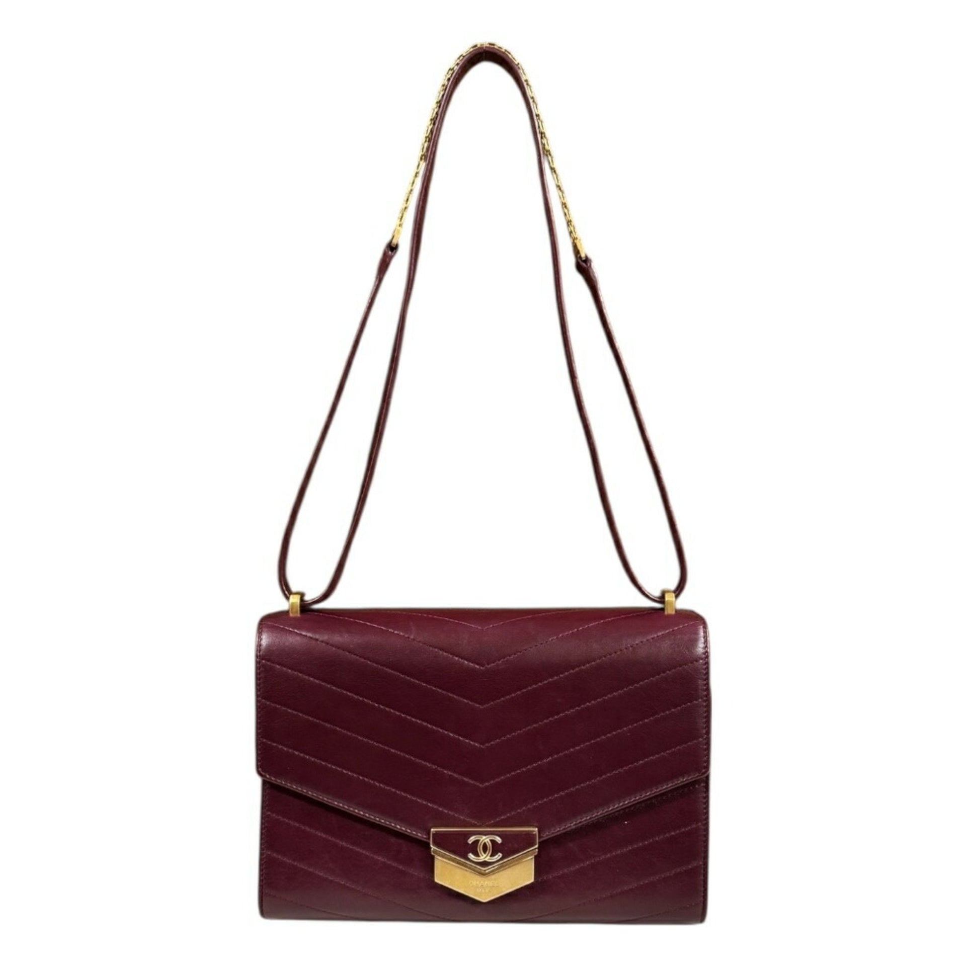 Chanel V-stitch shoulder bag leather red women\'s CHANEL