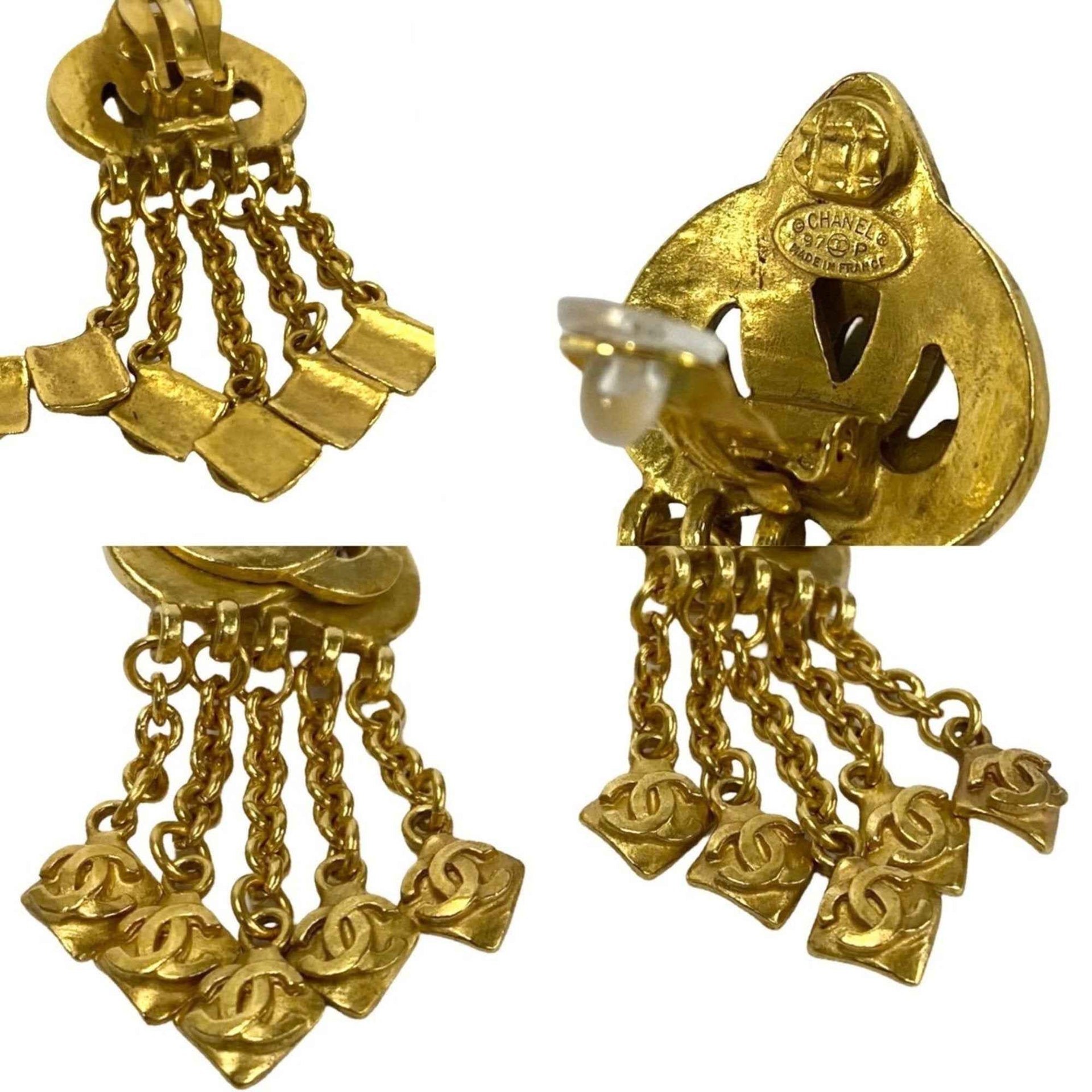 CHANEL Vintage 97P Engraved Coco Mark Motif Earrings/Ear Cuff Gold 228-7