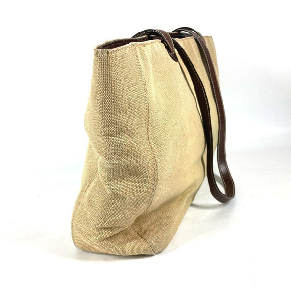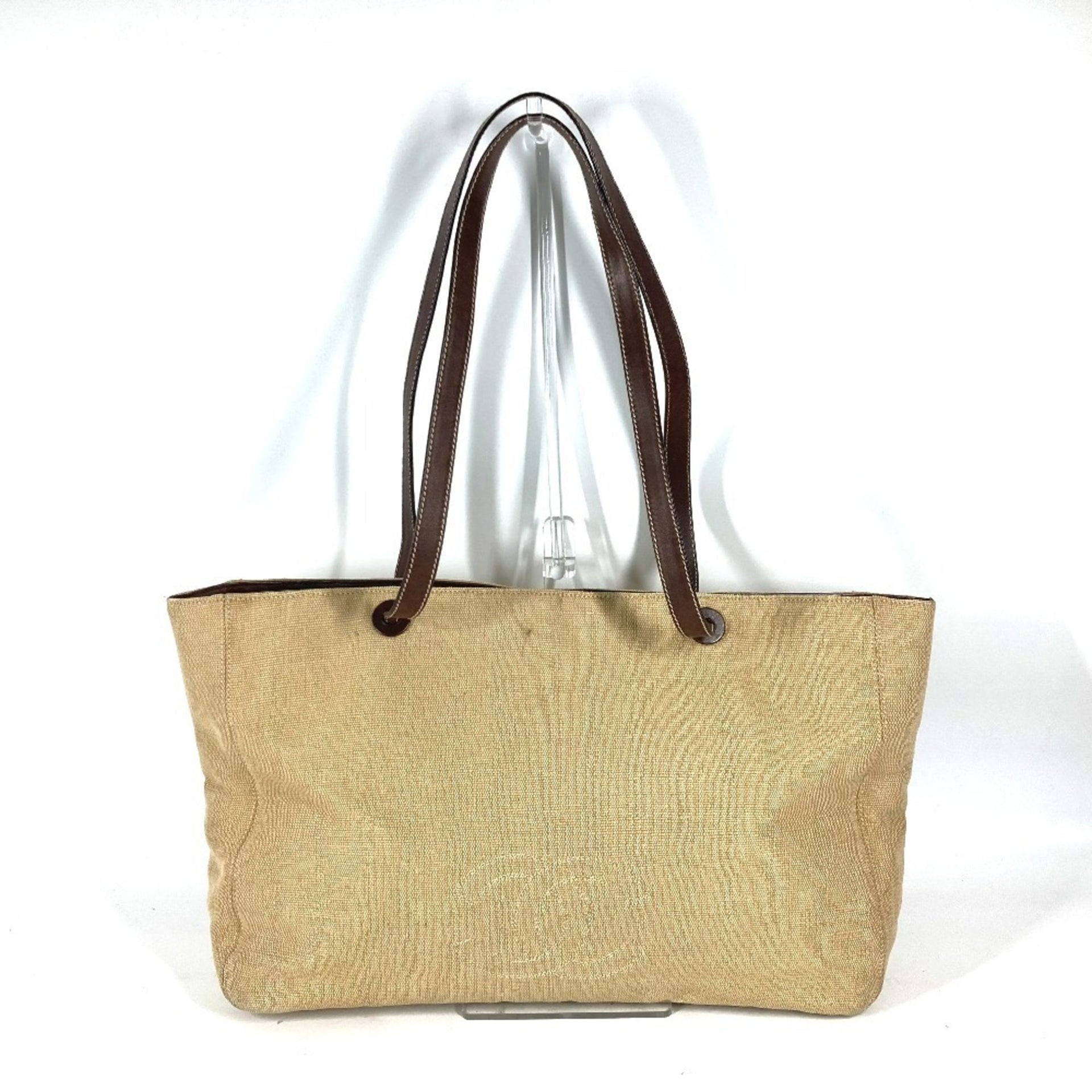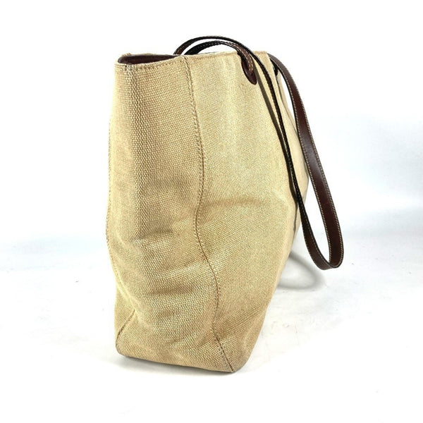 CHANEL Vintage CC Coco Mark Logo Tote Bag Extra Large Shoulder Linen Leather Women\'s Beige