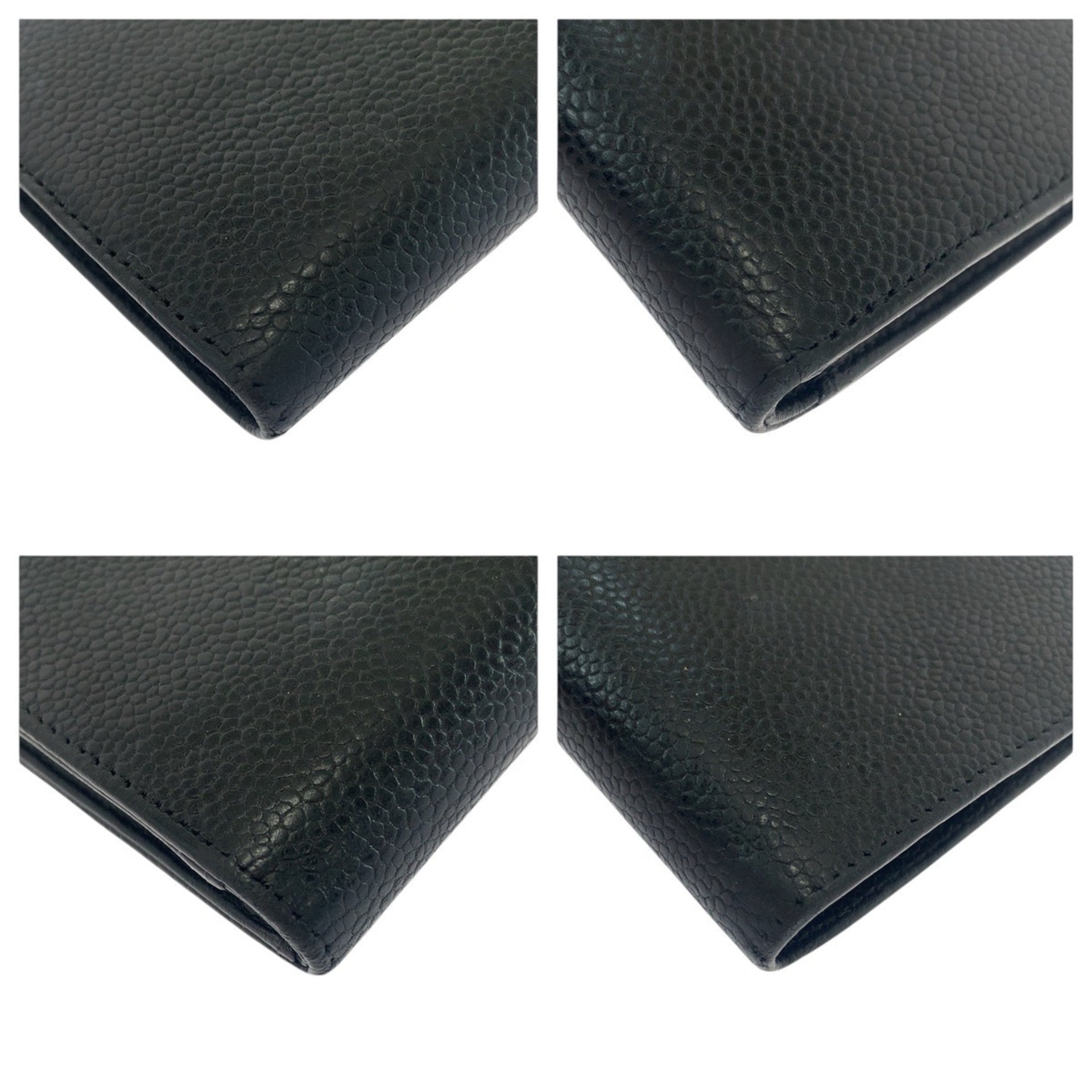 CHANEL Vintage Coco Mark Black Caviar Leather Long Wallet for Women with Gold Hardware