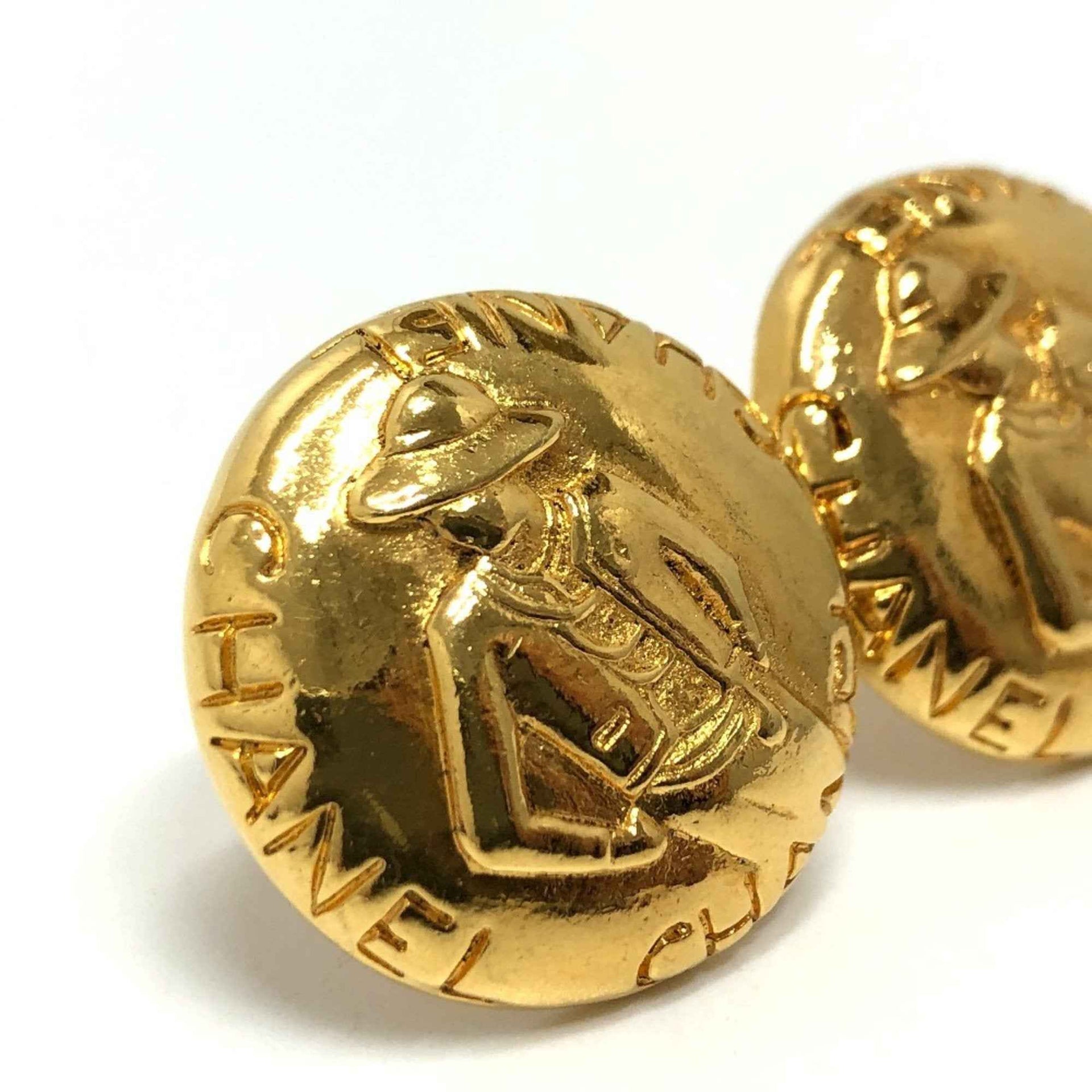 CHANEL Vintage Mademoiselle Round Earrings, Metal, Women\'s, Gold