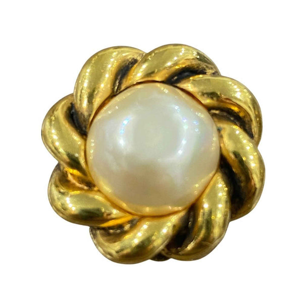 CHANEL Vintage Rope Twist Design Faux Pearl Earrings, Gold and White, Women\'s