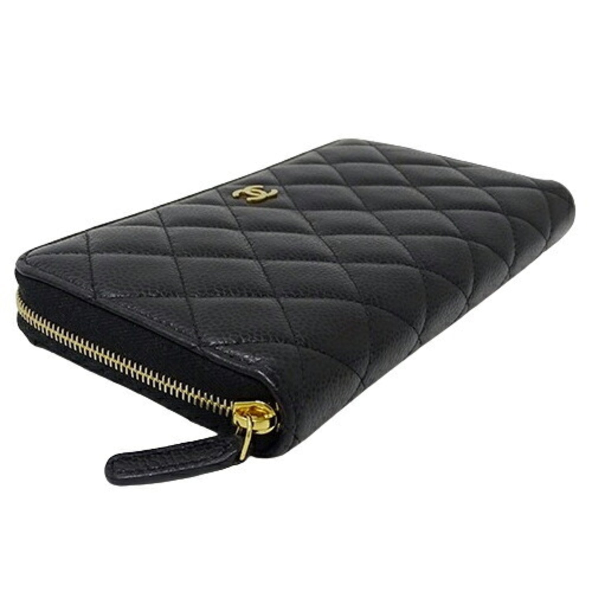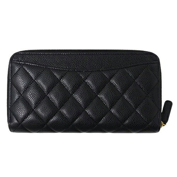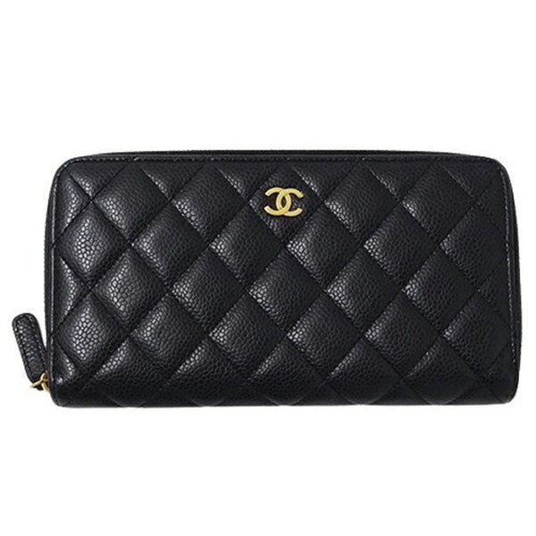 CHANEL Wallet Matelasse Women\'s Long Caviar Skin Black Round