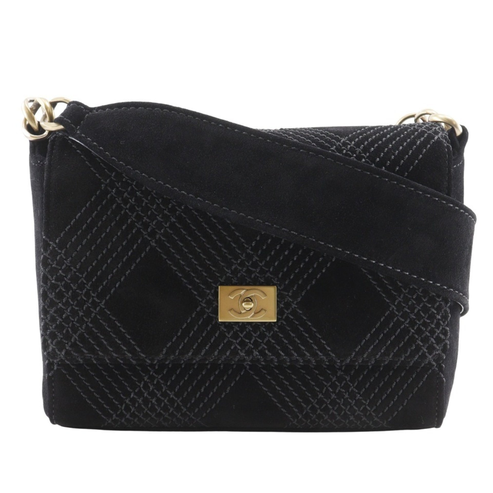 CHANEL Wild Stitch Shoulder Bag A19343Y02640, Black Suede, Crossbody, Turnlock, Women\'s