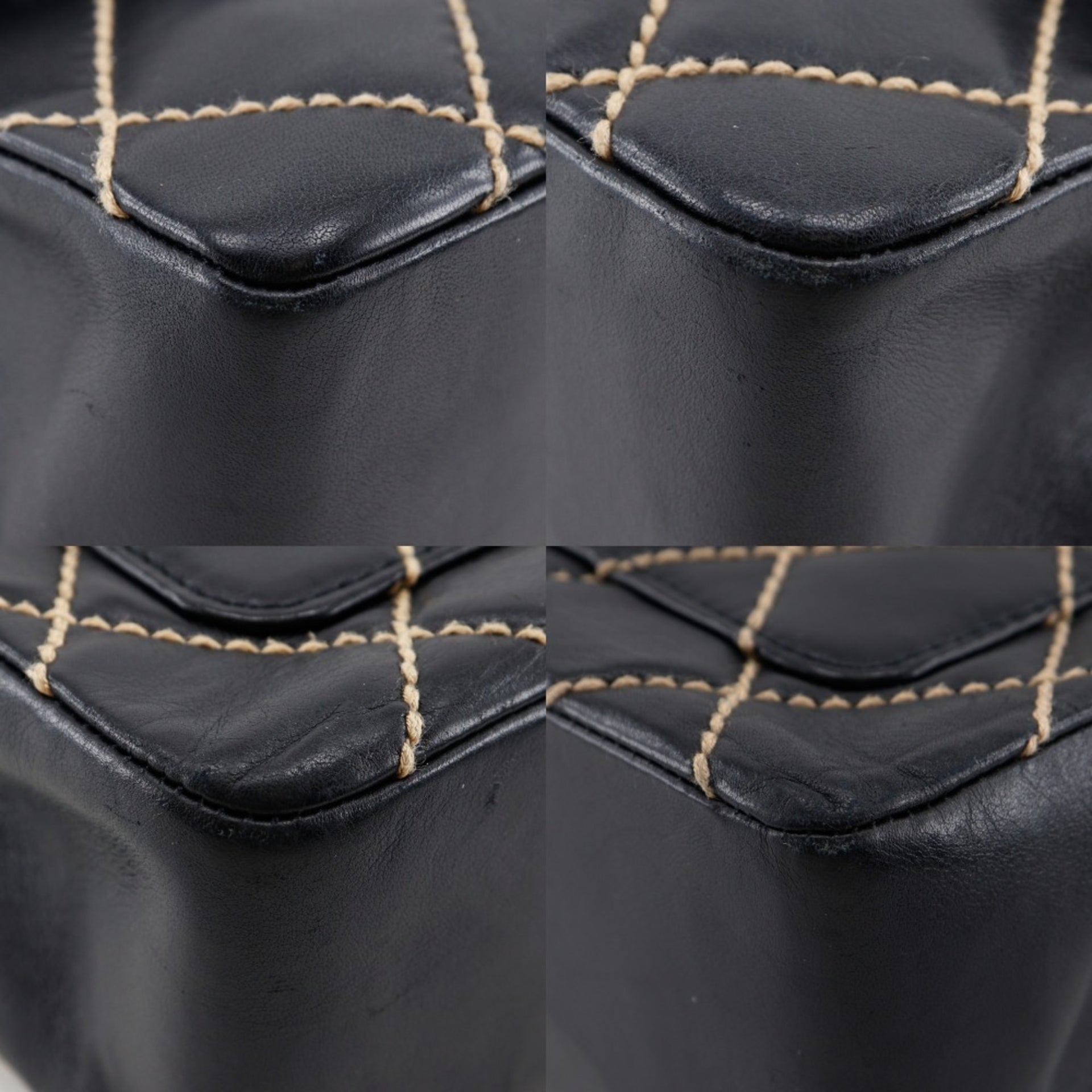 CHANEL Wild Stitch Shoulder Bag, Double Chain Leather, Black, A5, Turn Lock, Women\'s, G162525008