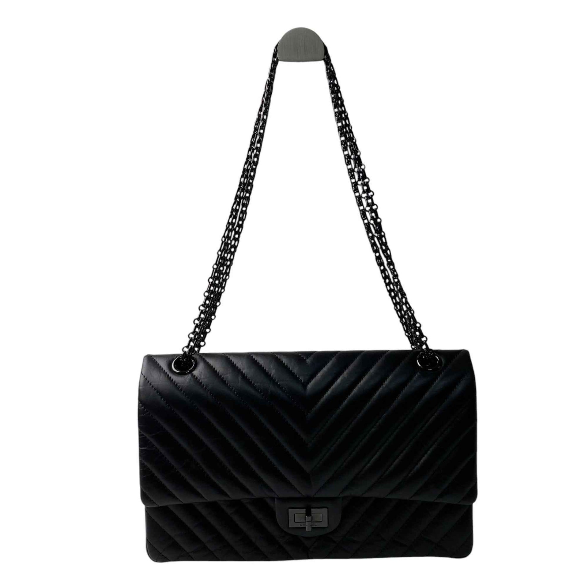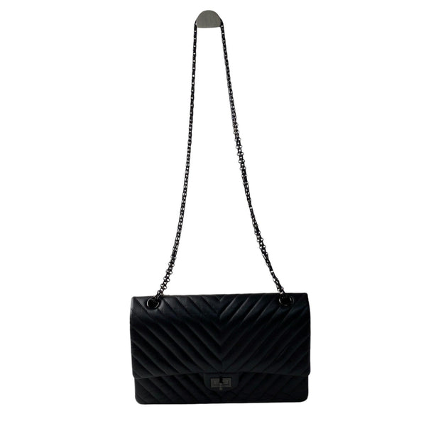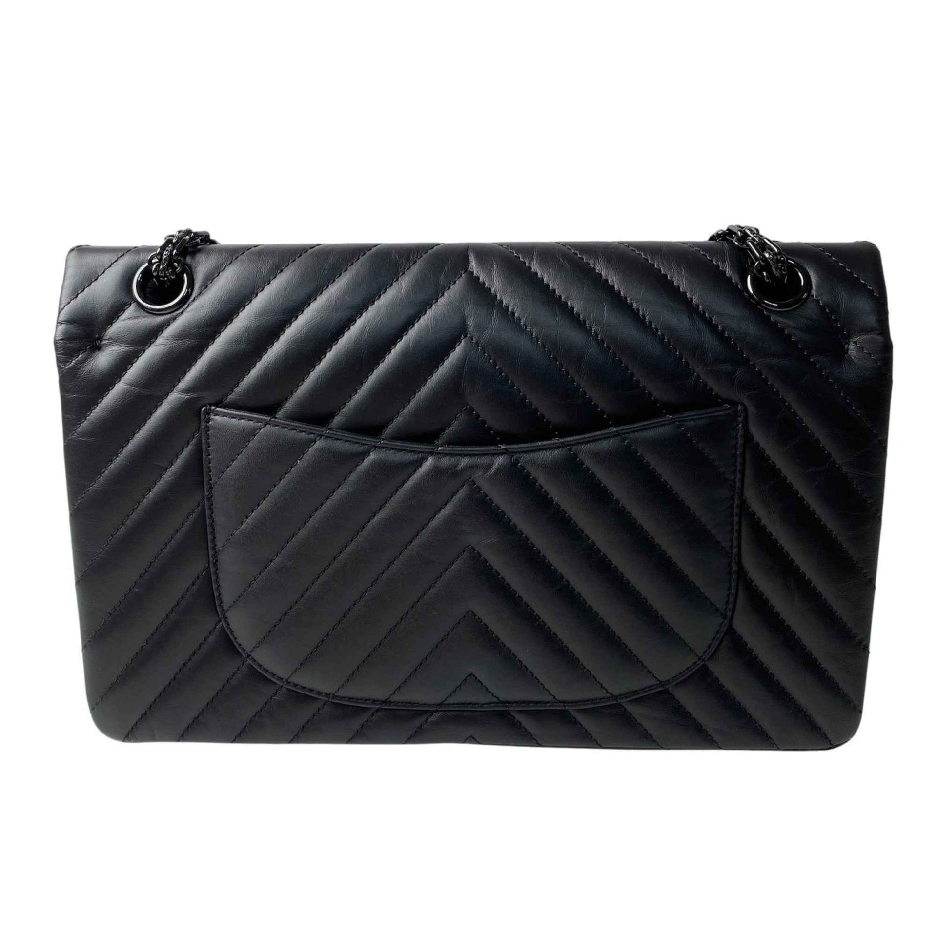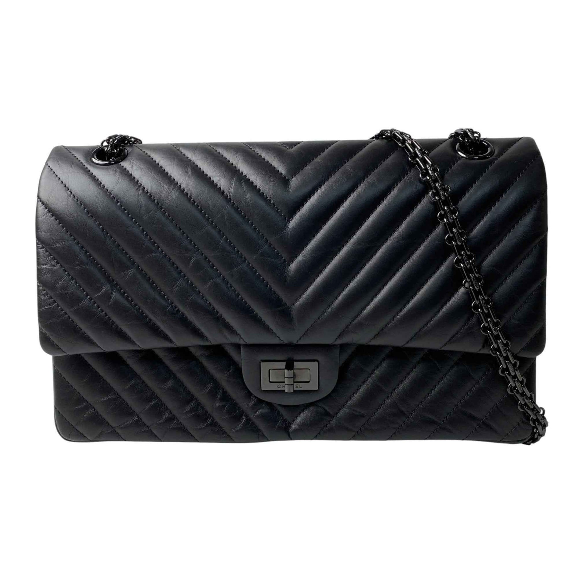 CHANEL Women\'s So Black Chevron 2.55 Double Flap Chain Shoulder Bag Crossbody