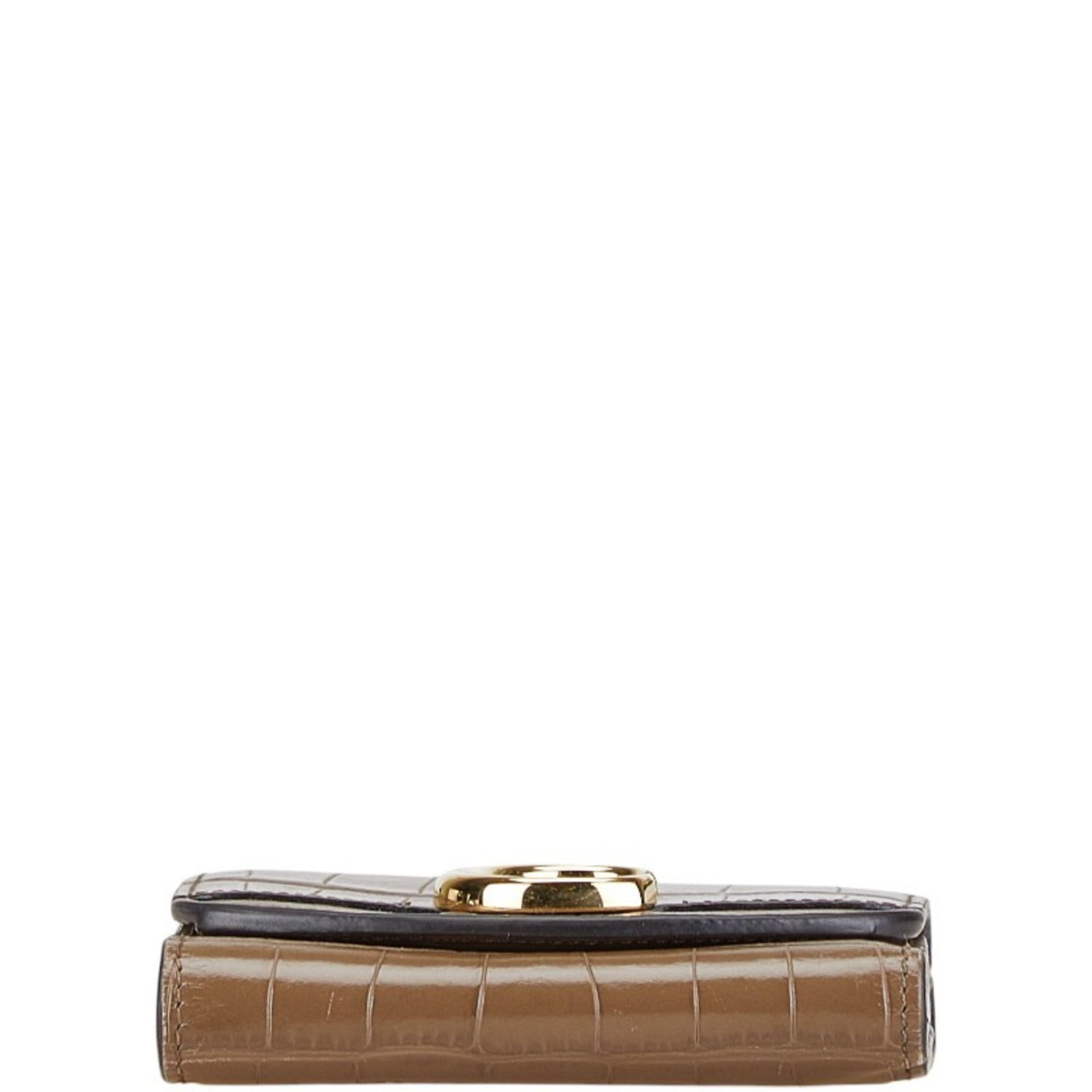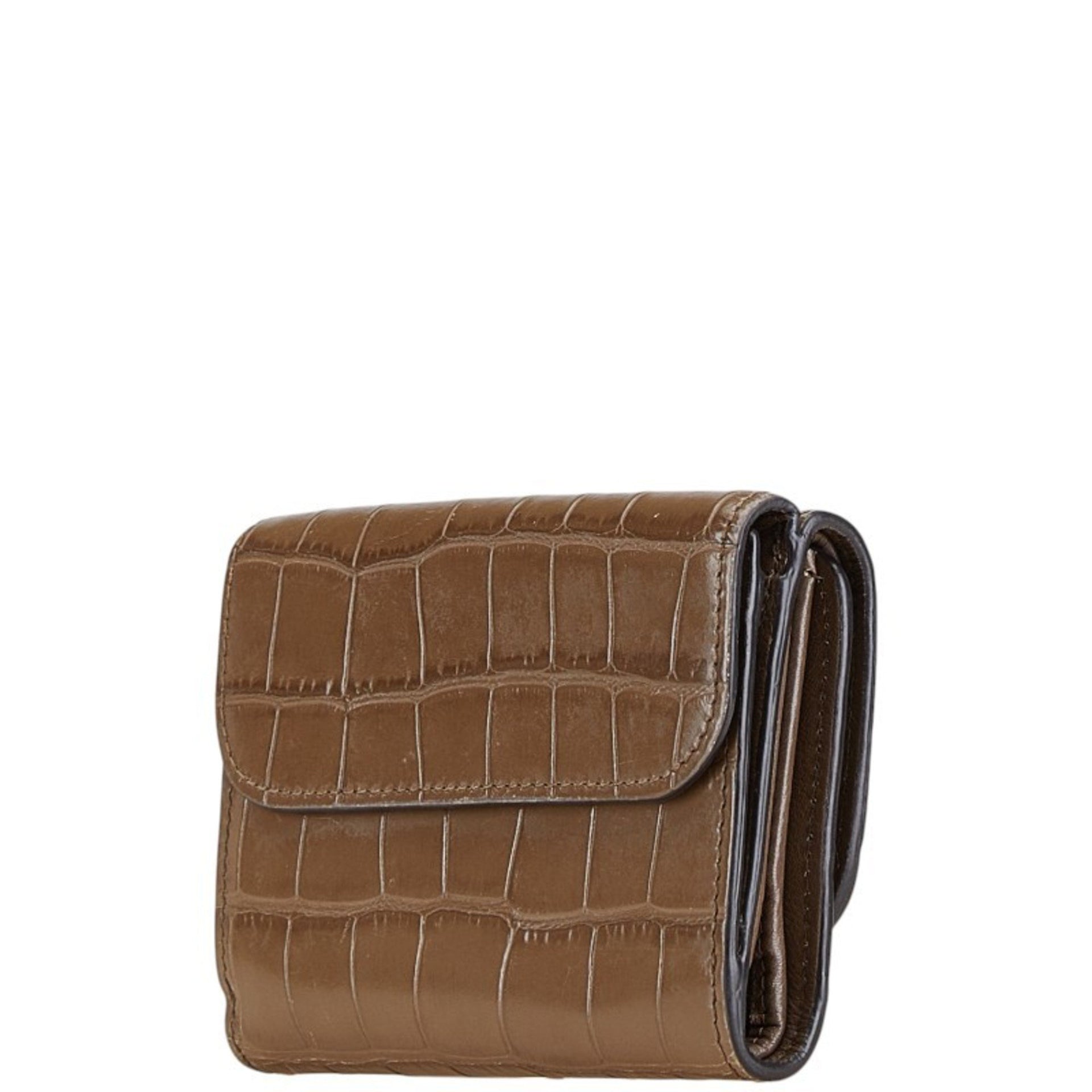 Chloé Chloe Crocodile Embossed Tri-fold Wallet Brown Leather Women\'s