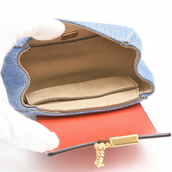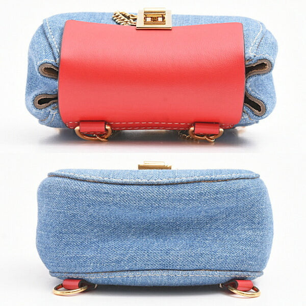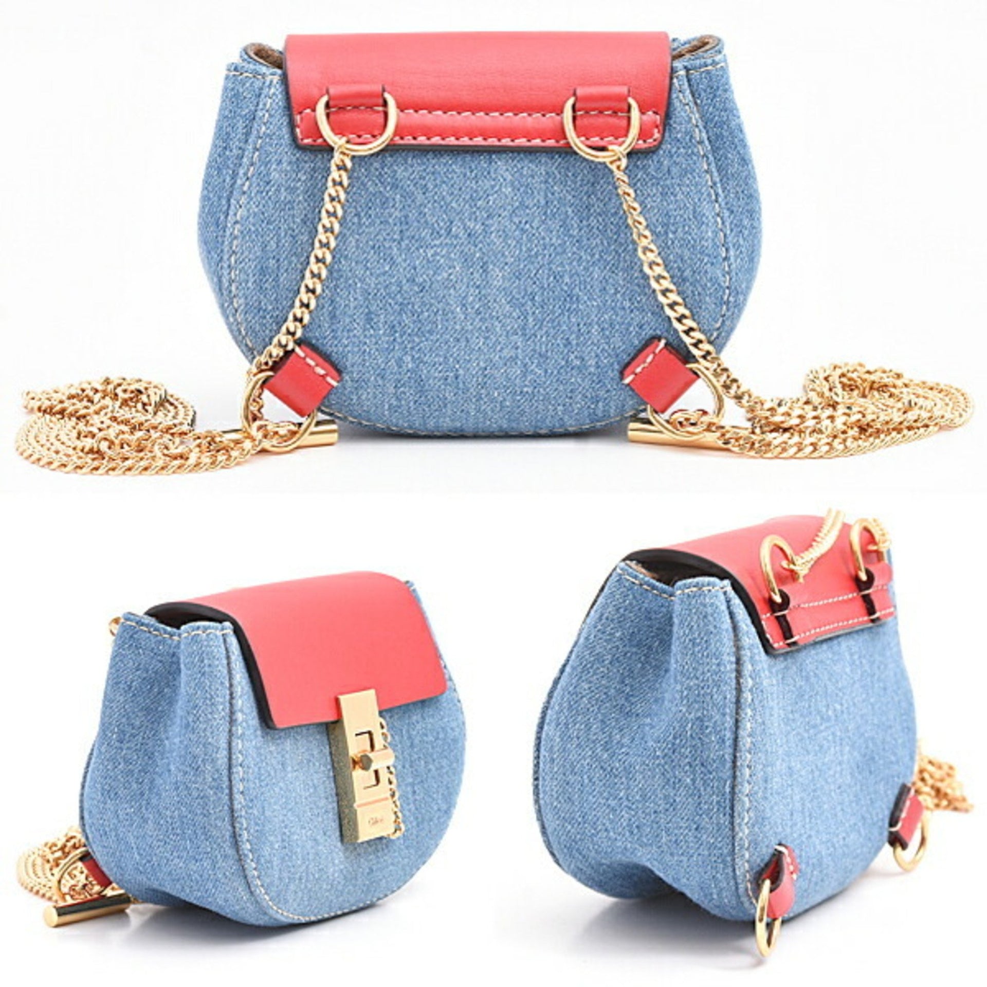 Chloé Chloe Women\'s Drew Mini Crossbody Backpack in Denim and Calfskin, Red, CHC21SP100E27664