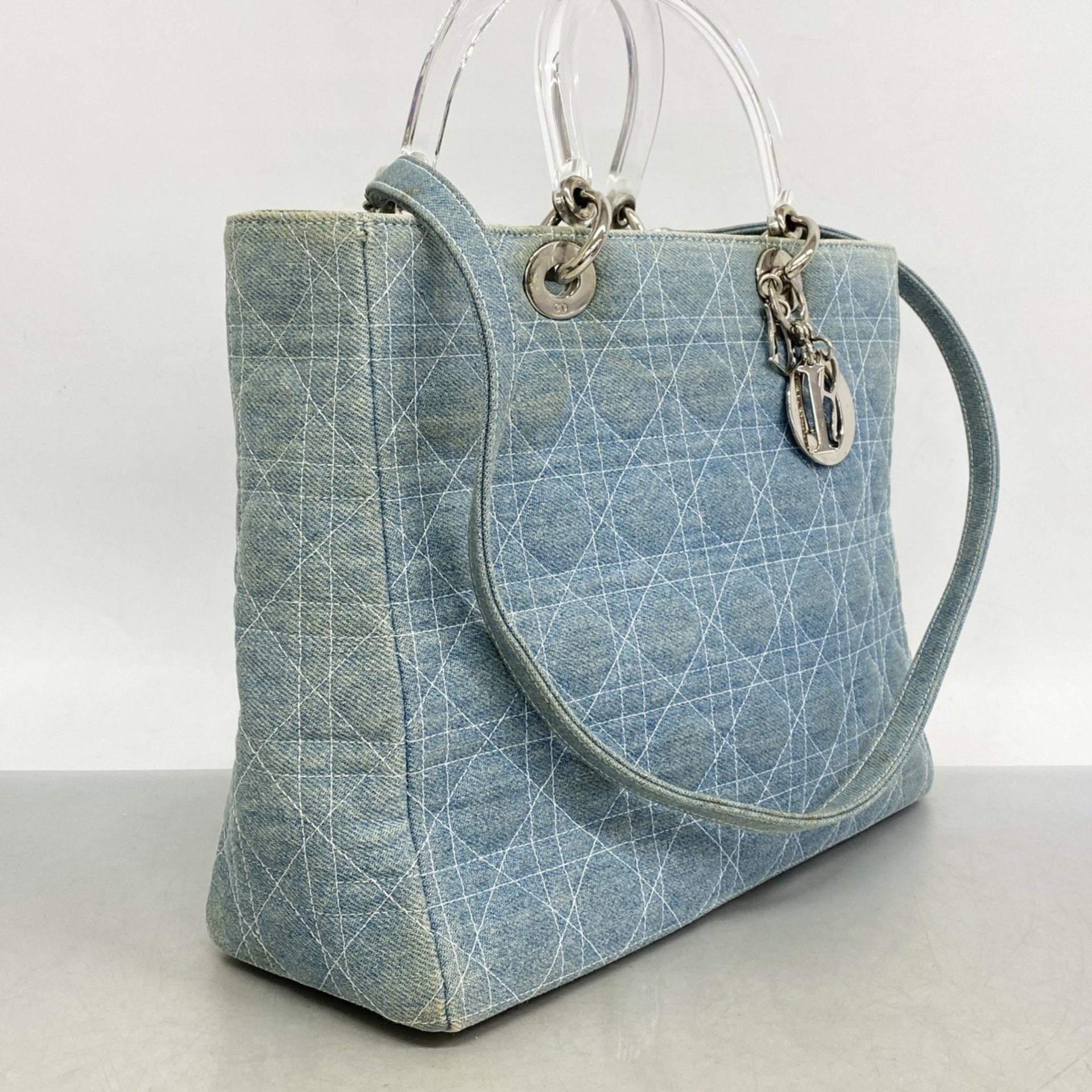 Christian Dior Cannage Lady Denim Blue 2-Way Bag for Women
