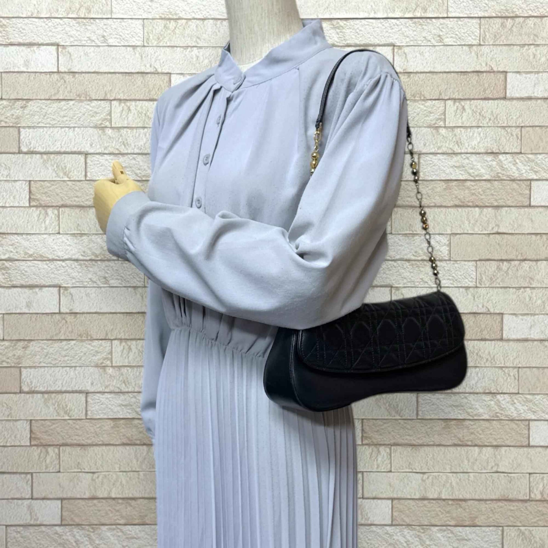 Christian Dior Cannage Shoulder Bag Leather Black Women\'s Chain