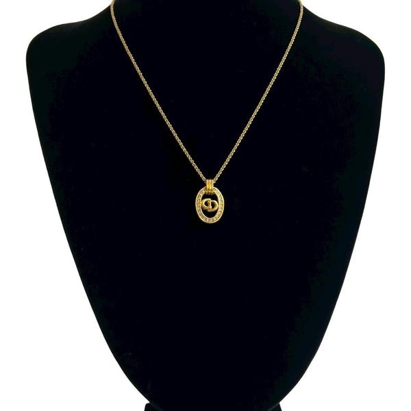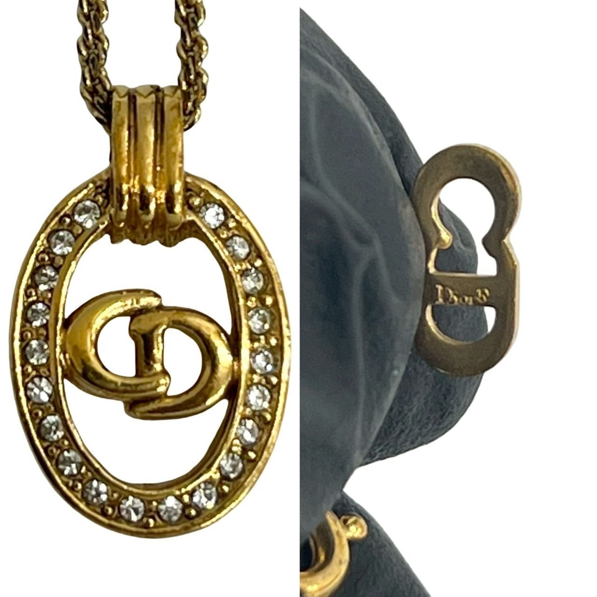 Christian Dior CD logo motif GP rhinestone necklace pendant choker gold 55917