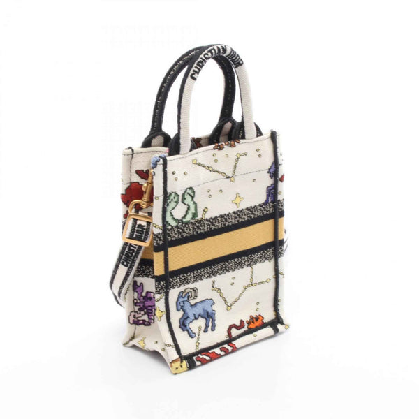Christian Dior Dior BOOK TOTE Mini Handbag, Canvas, Women\'s, White, Black, Multicolor