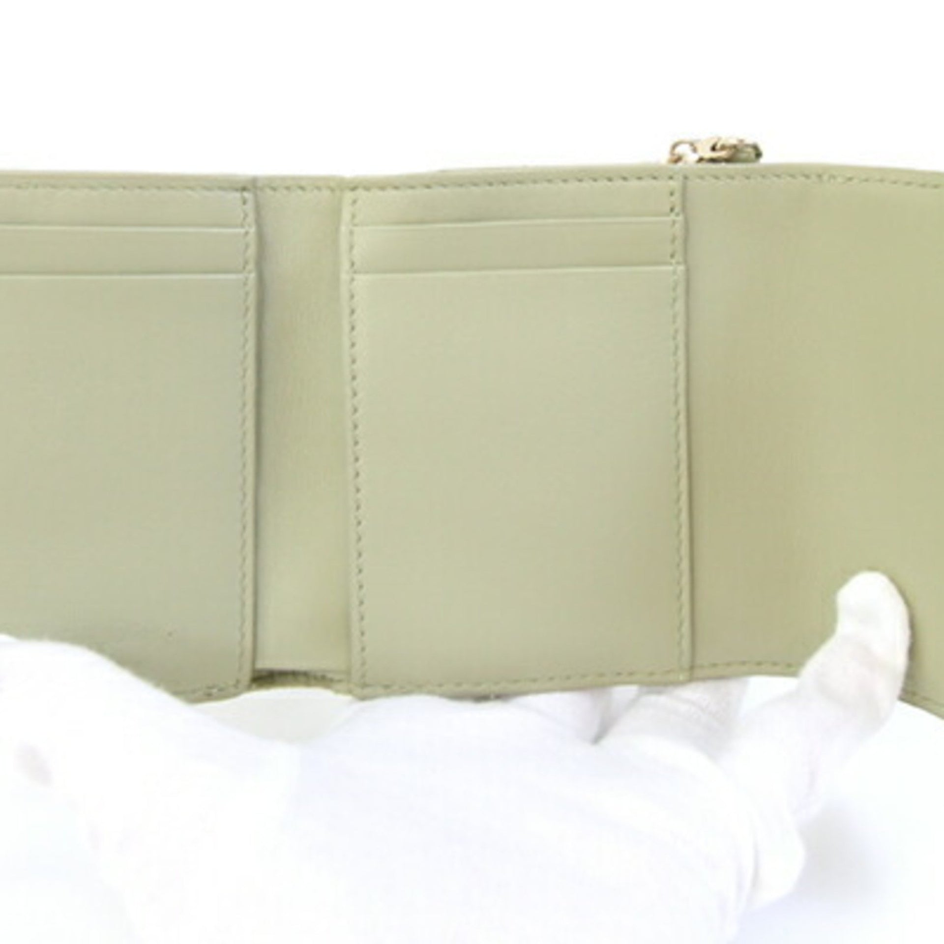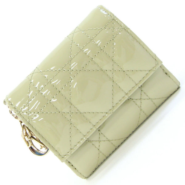 Christian Dior Dior Tri-fold Wallet Lady Lotus S0181OVRB Green Patent Calfskin Cannage Women\'s DIOR