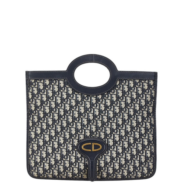 Christian Dior Dior Trotter CD Logo Handbag Navy Beige Canvas Leather Women\'s