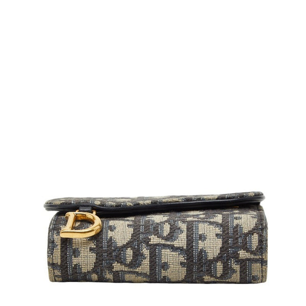 Christian Dior Dior Trotter Oblique Tri-fold Compact Wallet in Beige and Navy Canvas Leather. Women\'s.