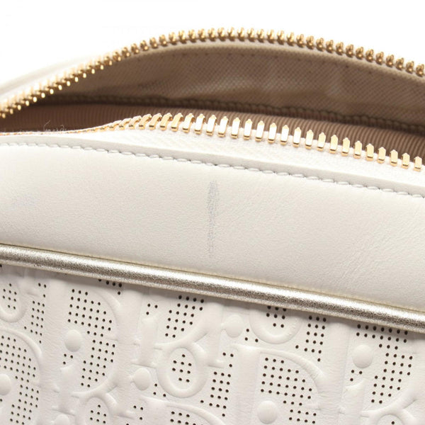 Christian Dior Dior Vibe Bowling Bag, Leather, Women\'s, White/Gold, M62040DDT