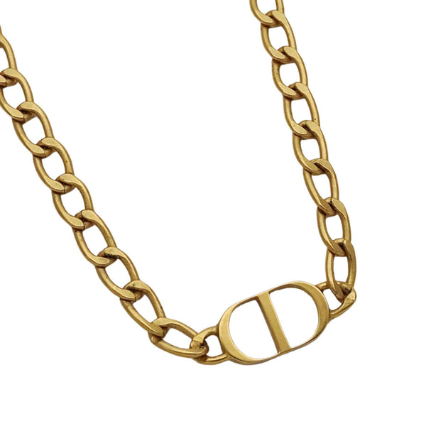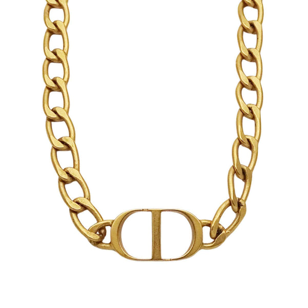 Christian Dior Dior Women\'s Petite CD Choker with Metal Gold Chain and Curb