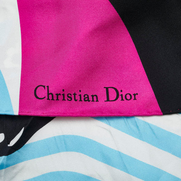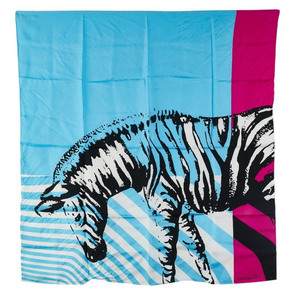 Christian Dior Dior Zebra Scarf, Silk, Blue, Black, Multicolor, Women\'s,