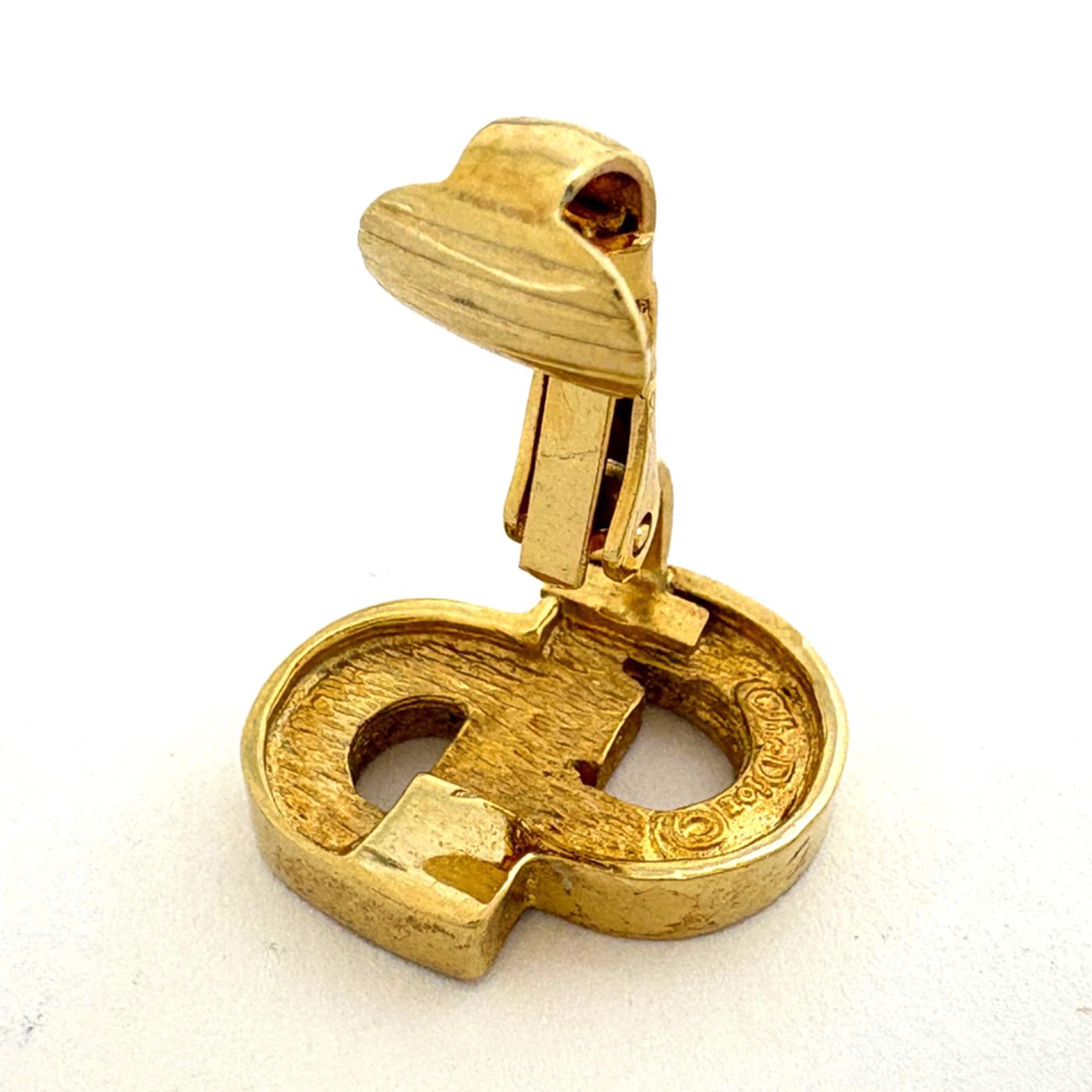 Christian Dior Logo Rhinestone Earrings CD GP Gold Women\'s