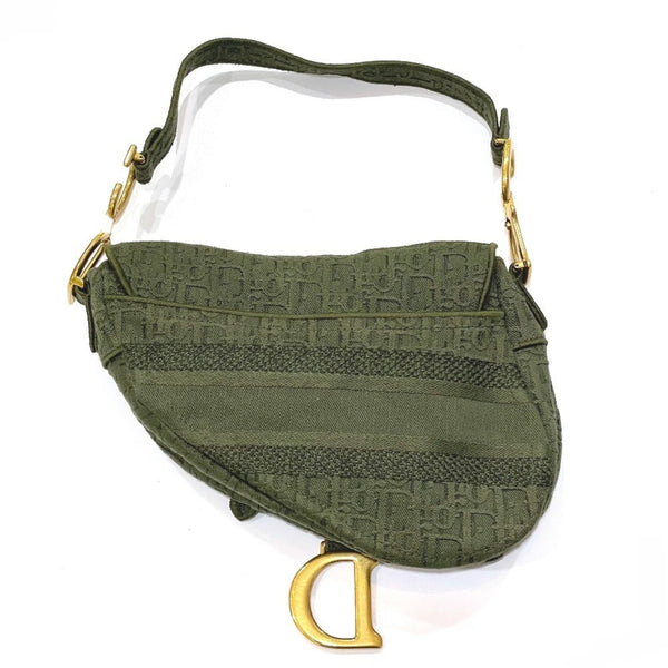 Christian Dior Oblique SADDLE Embroidered Saddle Bag Shoulder Handbag Canvas Women\'s Khaki