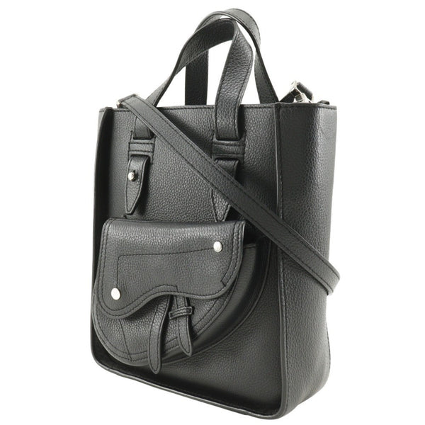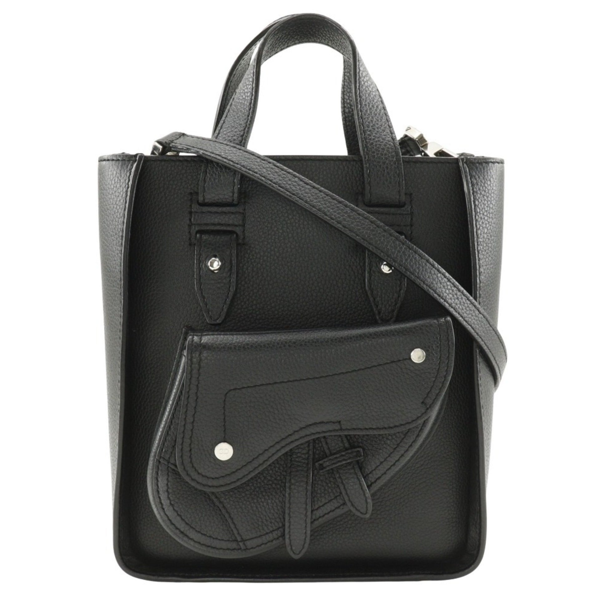 Christian Dior Saddle Mini Tote Handbag Shoulder Bag Calf Black 2way A5 Type Women\'s