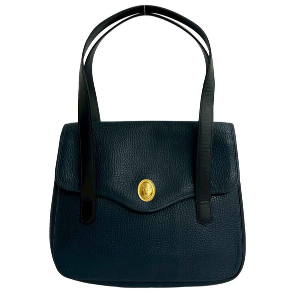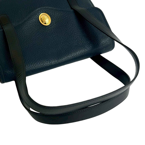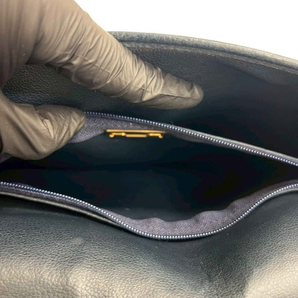 Christian Dior Vintage CD Logo Metal Hardware Leather Handbag Mini Tote Bag Navy 30108