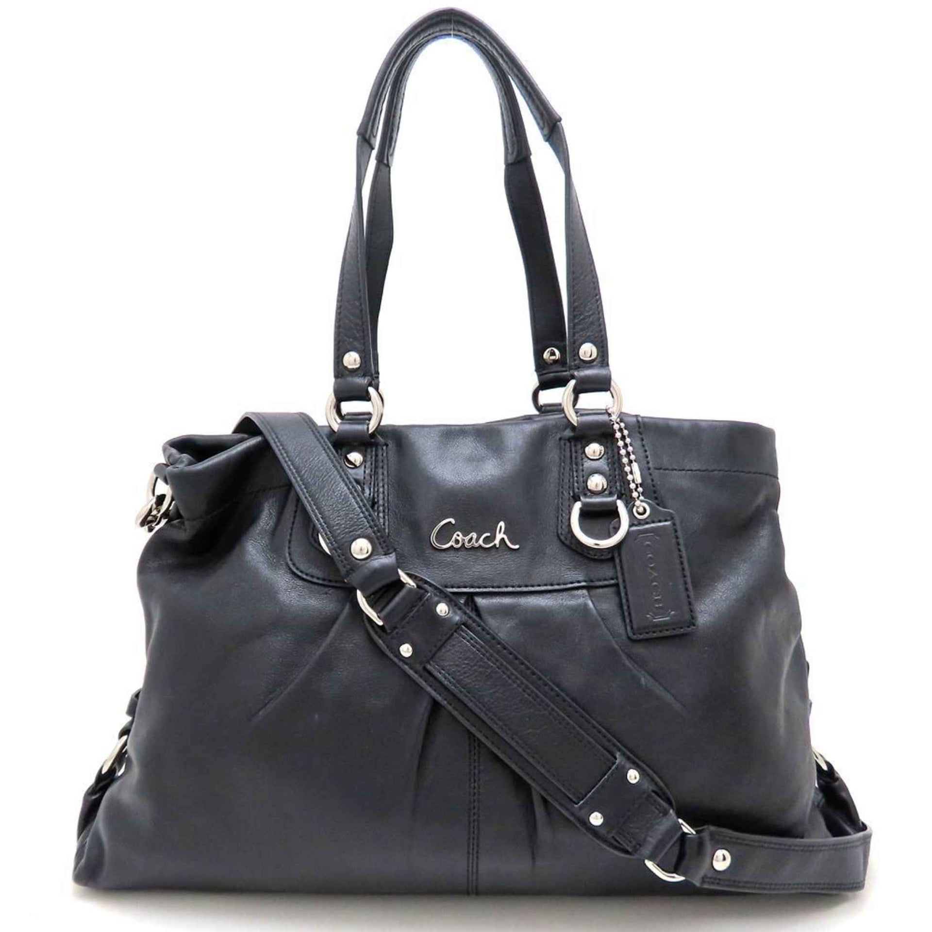 COACH Ashley Leather Carryall Tote Bag, 2-Way, F15513, Black Leather, Outlet, Women\'s, 353059