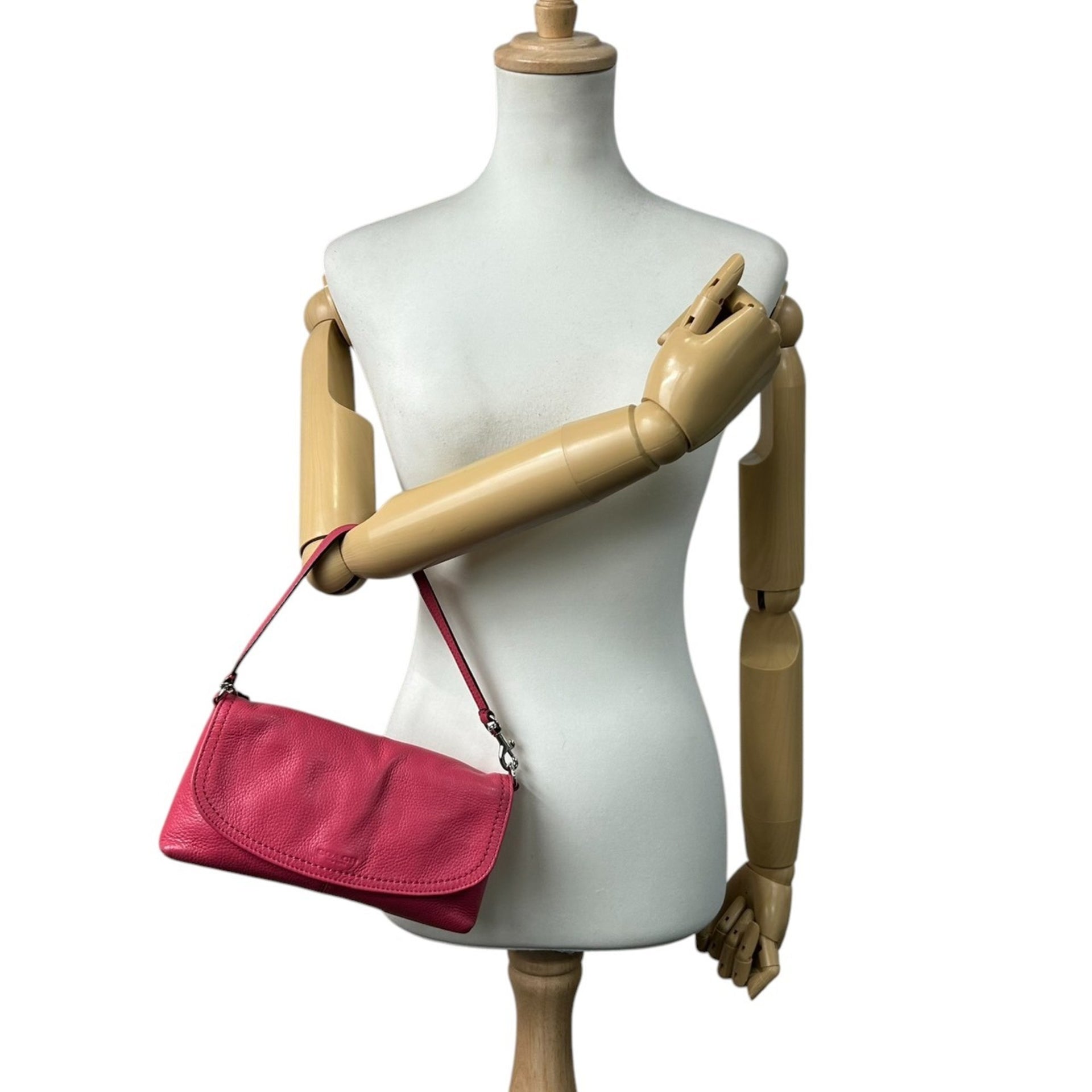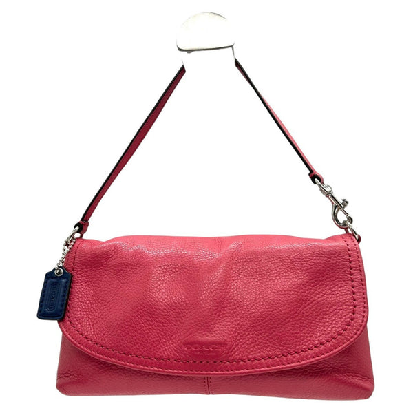 Coach handbag, leather, pink and navy, two-tone, accessory pouch, wristlet, mini bag, women\'s, flap, with charm, U1