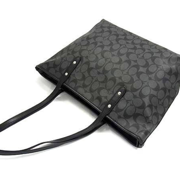 COACH Signature City Zip Top Tote Bag F58292 in Black and Leather. Women\'s Shoulder Bag.