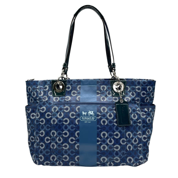 Coach U10 Tote/Shoulder Bag, 2-Way, Signature Circle Pattern, Navy, with Shoulder Strap