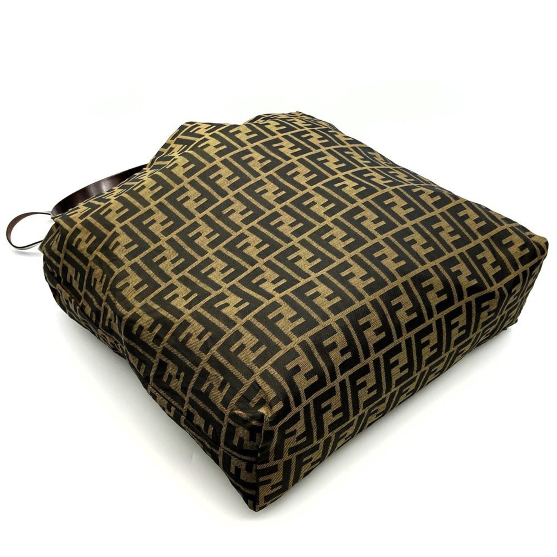 FENDI 71 15978 Tote Bag in Zucca Nylon Canvas and Leather, Brown Khaki, Women\'s