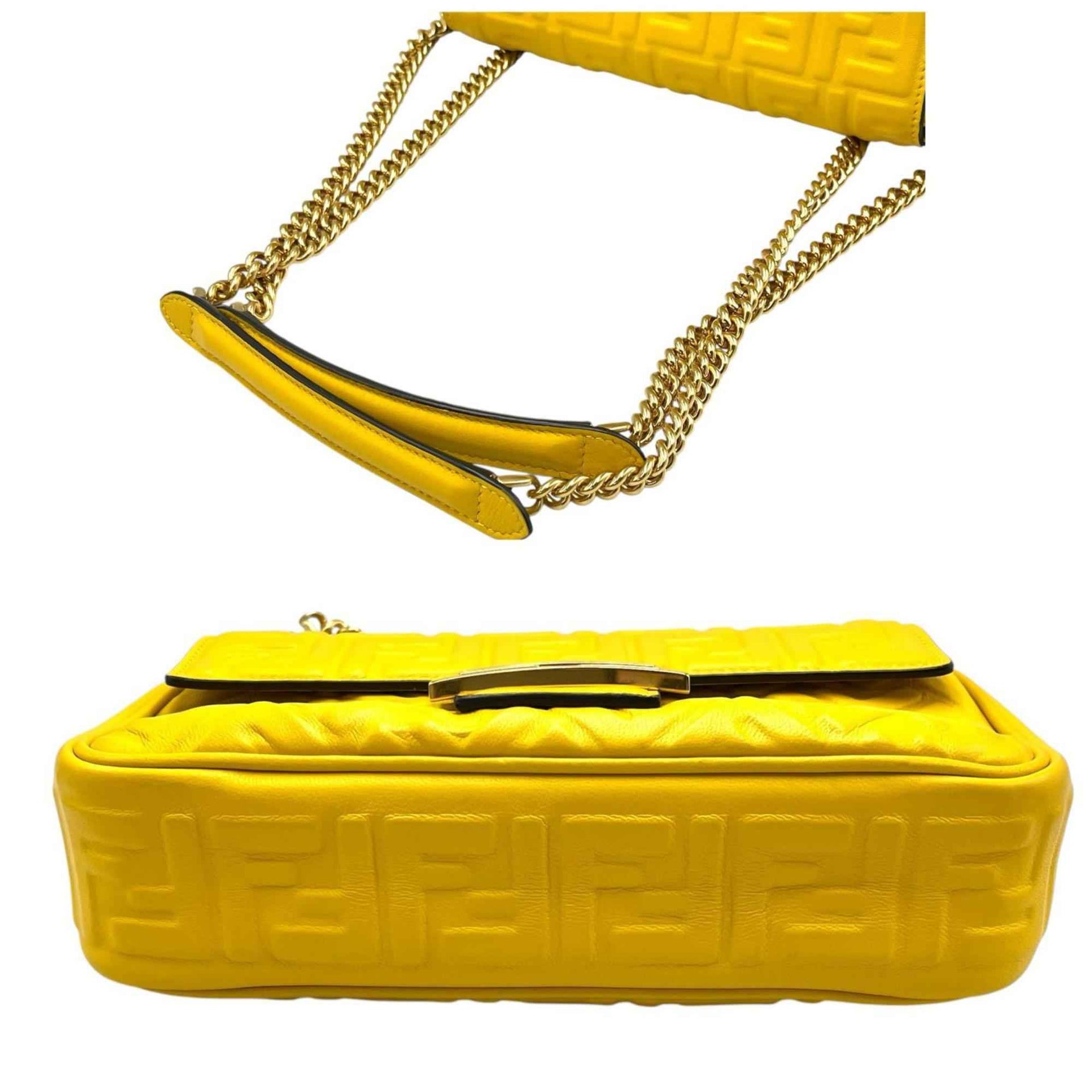 Fendi Baguette Chain Midi 2-Way Shoulder Bag 8BR793 in Yellow Leather for Women