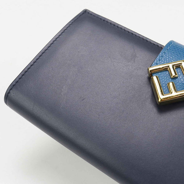 FENDI Continental Wallet with FF Diamonds, 8M0492, Navy Blue, Bi-fold Coin Pocket