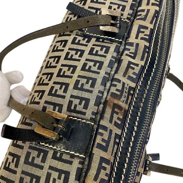 FENDI Hand Shoulder Mini Boston Bowling Bag Zucchino Tote Navy