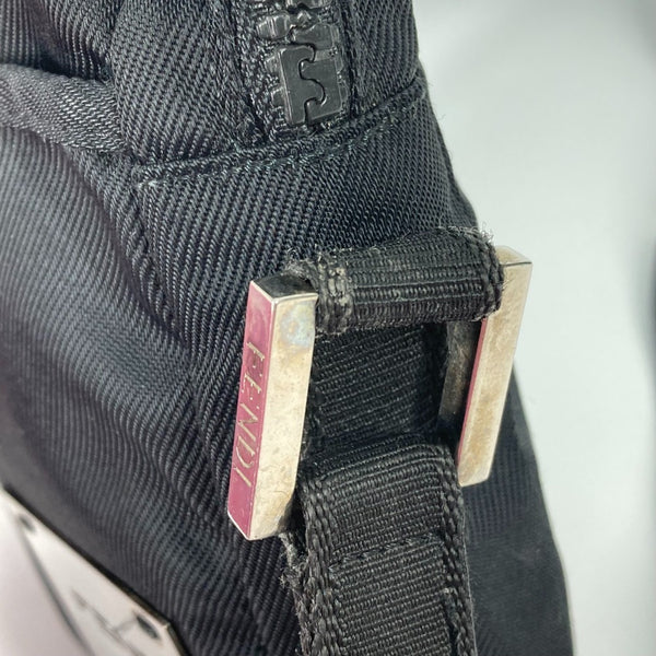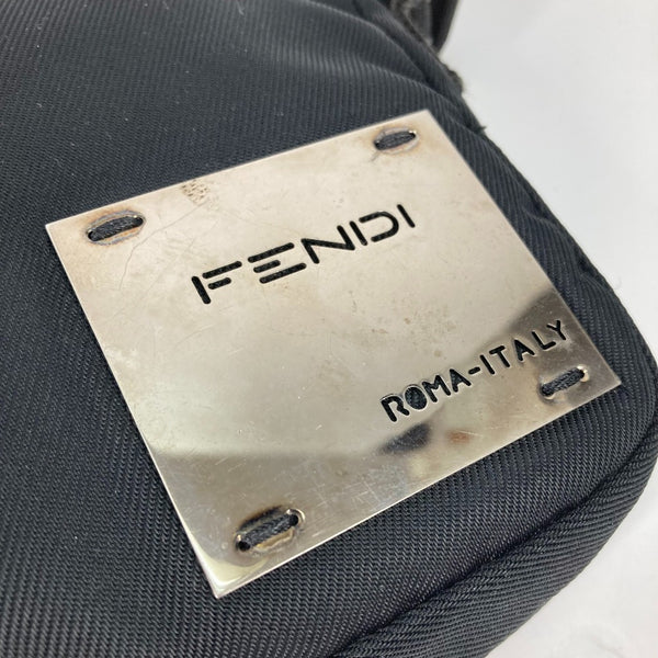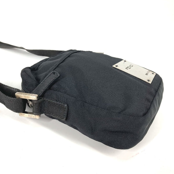 FENDI Logo Metal Plate Pochette Sacoche Shoulder Bag Nylon Men\'s Black