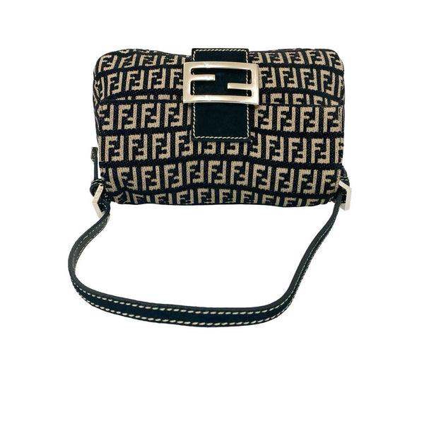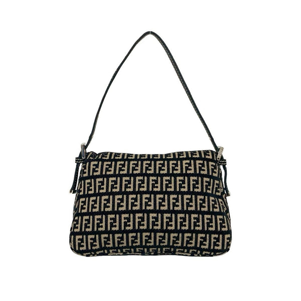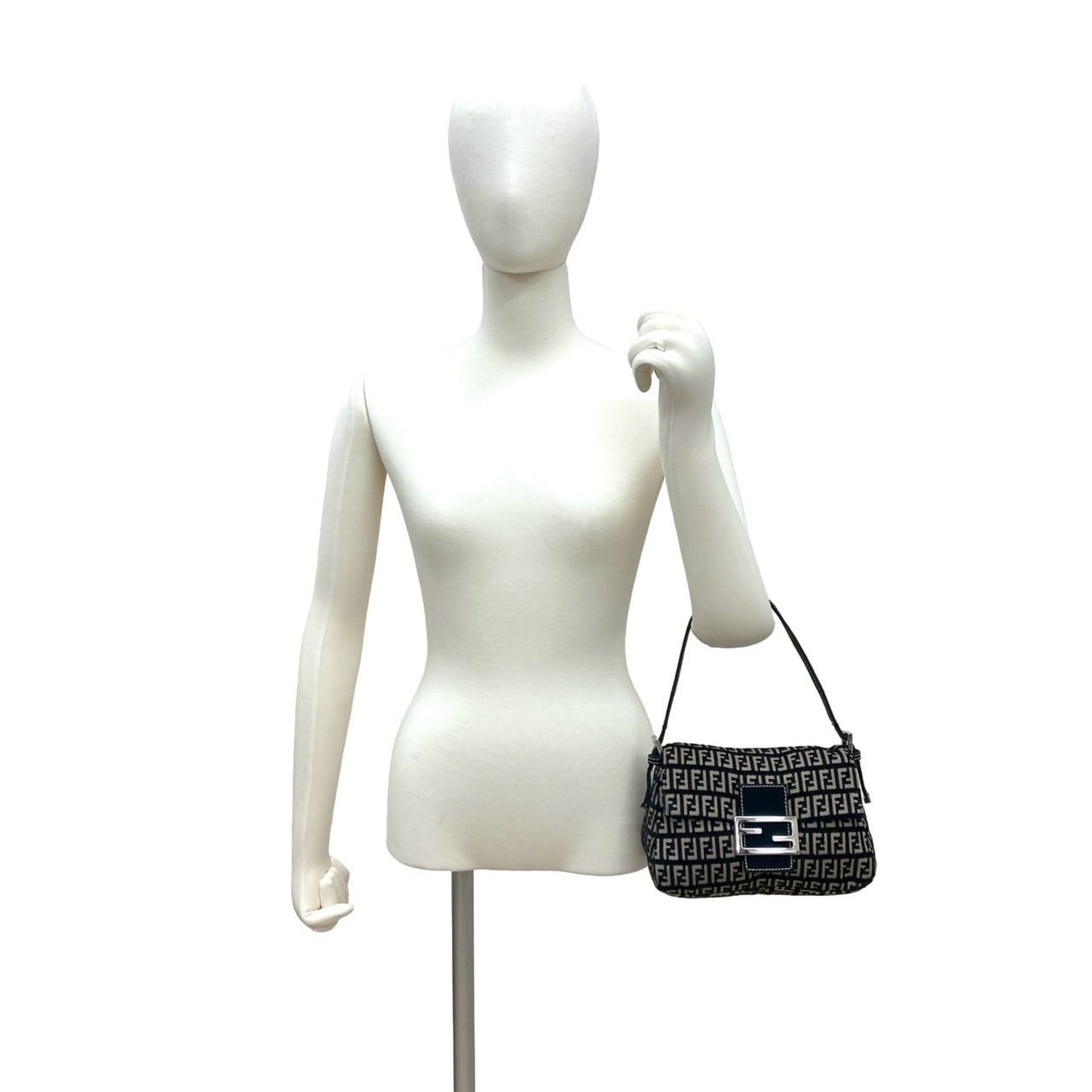 FENDI Mamma Bucket Zucchino FF Cotton Canvas Suede Leather Handbag Black Beige 21451