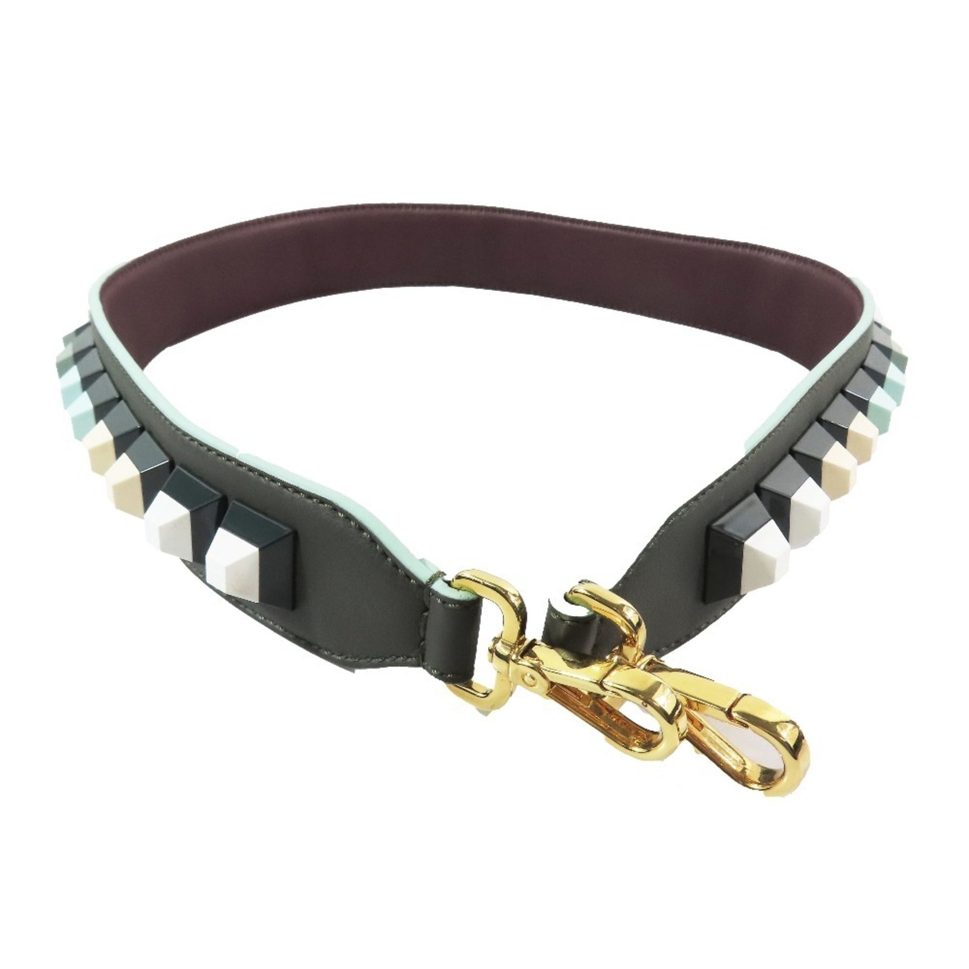FENDI Rockstud Strap You Leather Bag Shoulder Strap, Green, Women\'s
