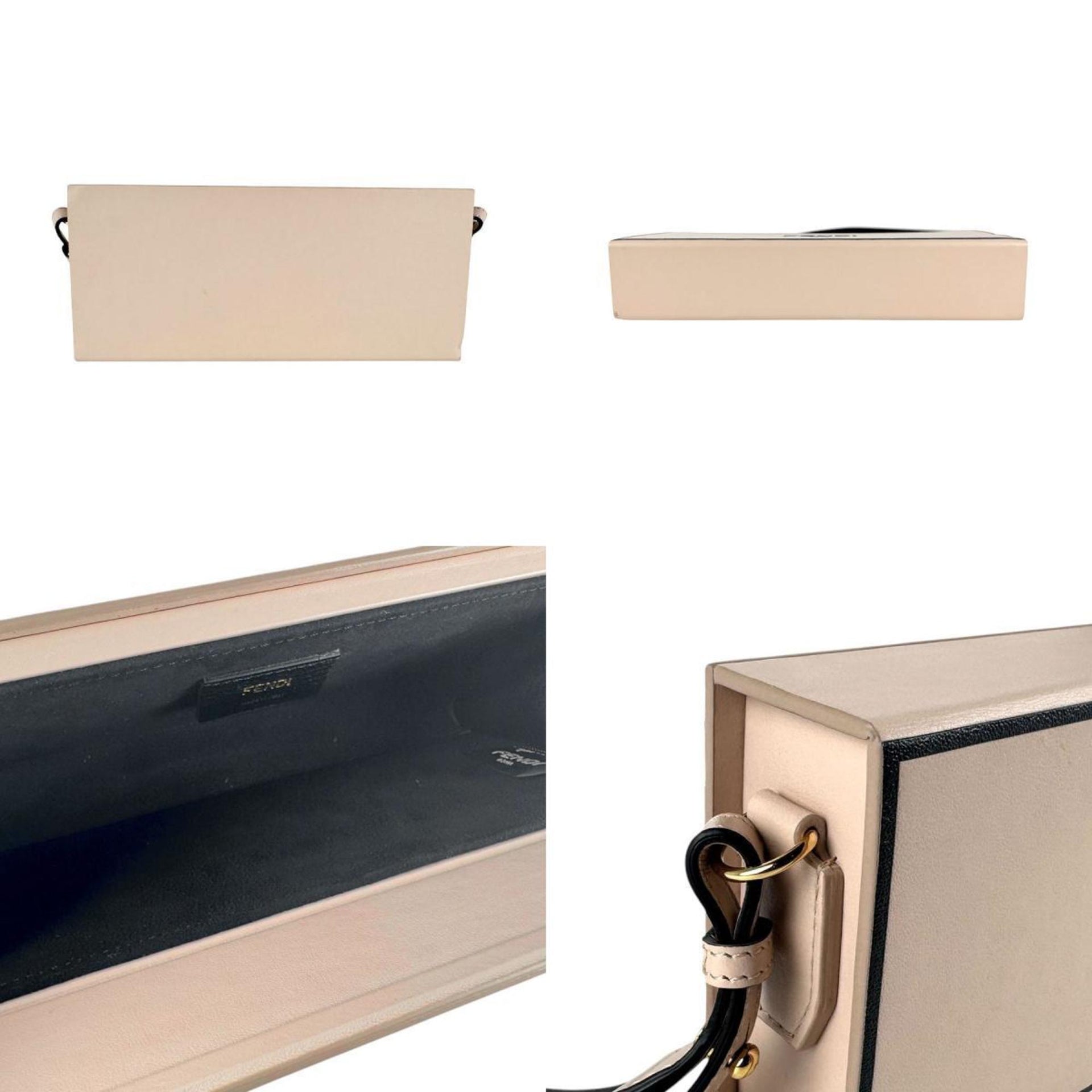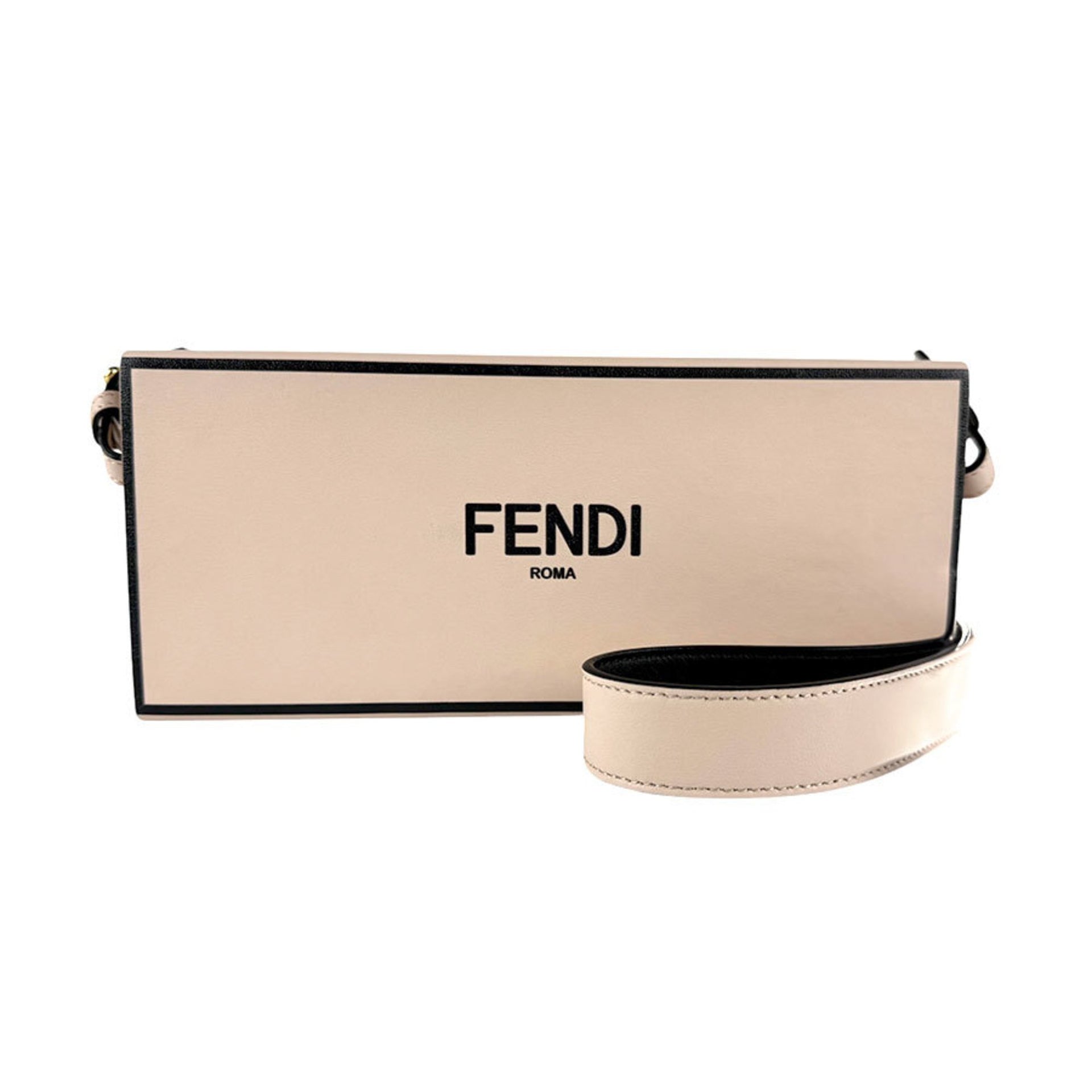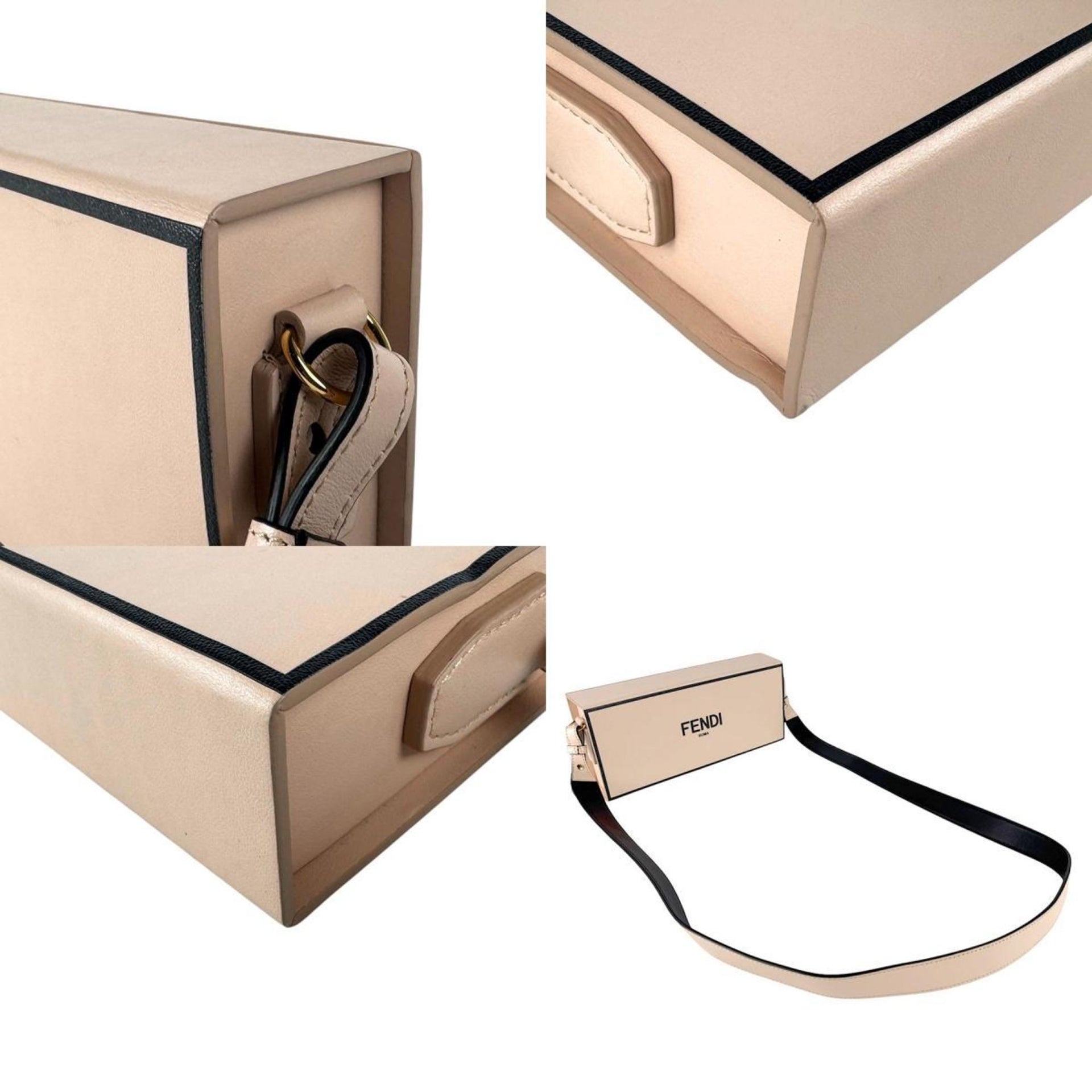 FENDI Shoulder Bag Box Horizontal Leather Pink Beige x Black Women\'s 8BT340-ADP6 z4673
