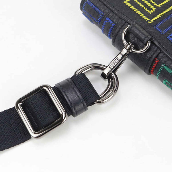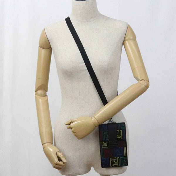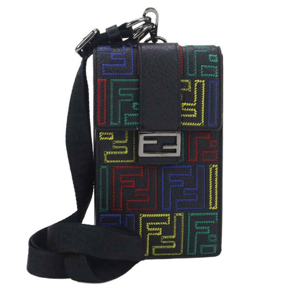 FENDI Shoulder Bag FE92325 with Zucca 7AS120 Phone Holder, Black, for Men and Women