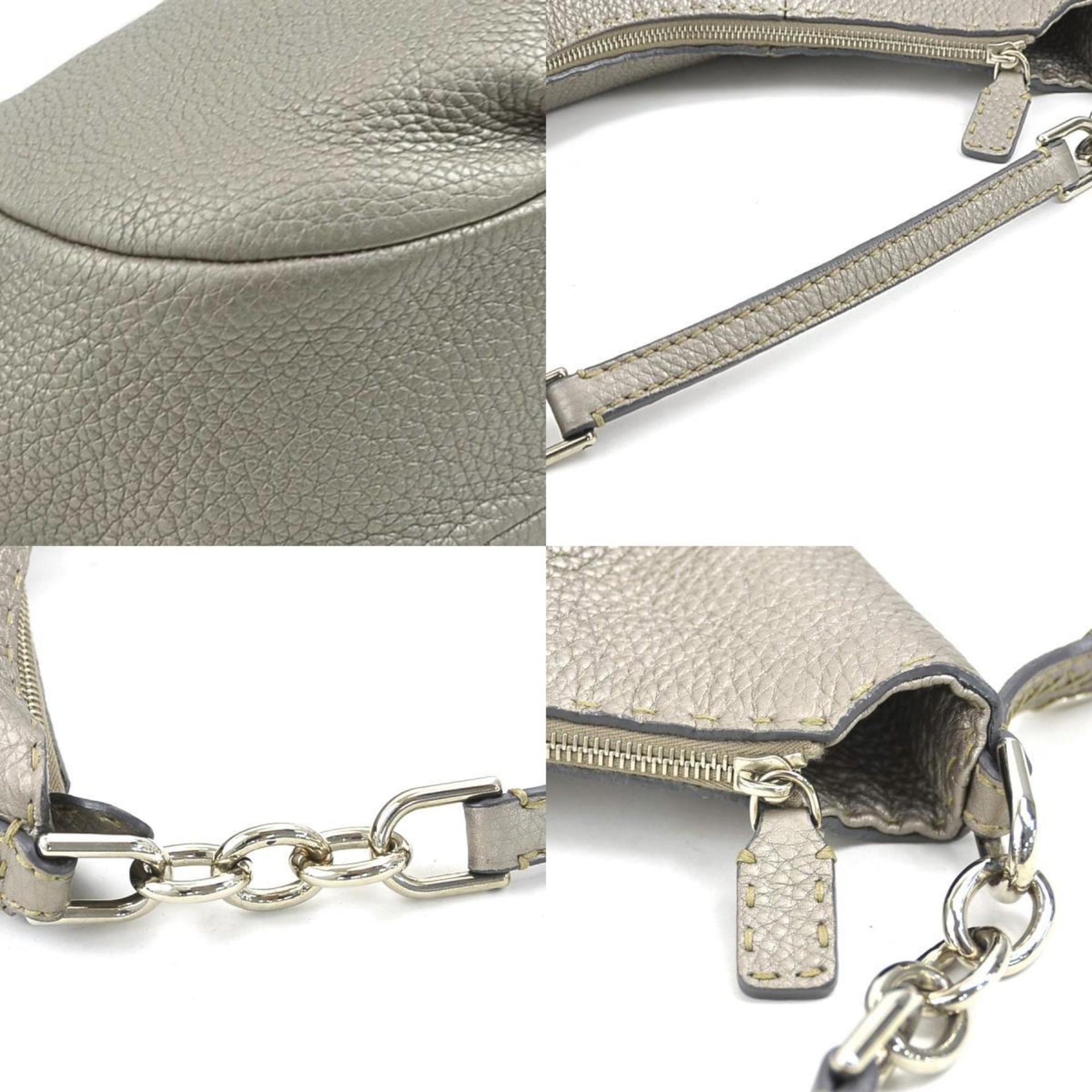 FENDI Shoulder Bag Selleria Leather Gold Grey Silver Women\'s 8BR618-NDU e60292k