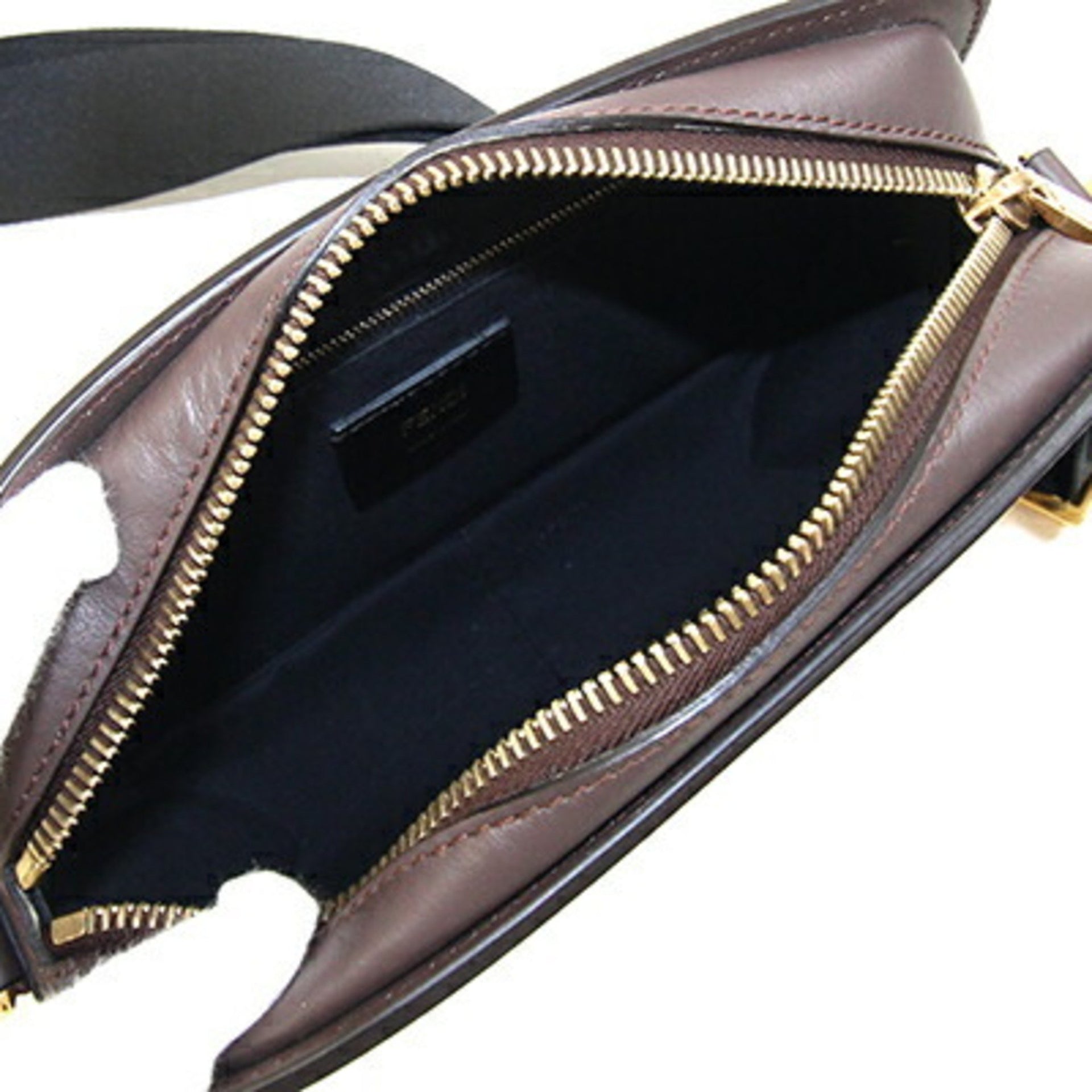 Fendi Shoulder Bag Zucca 7V28 Dark Brown Leather Clutch Second Men\'s FF Embossed Camera Crossbody FENDI