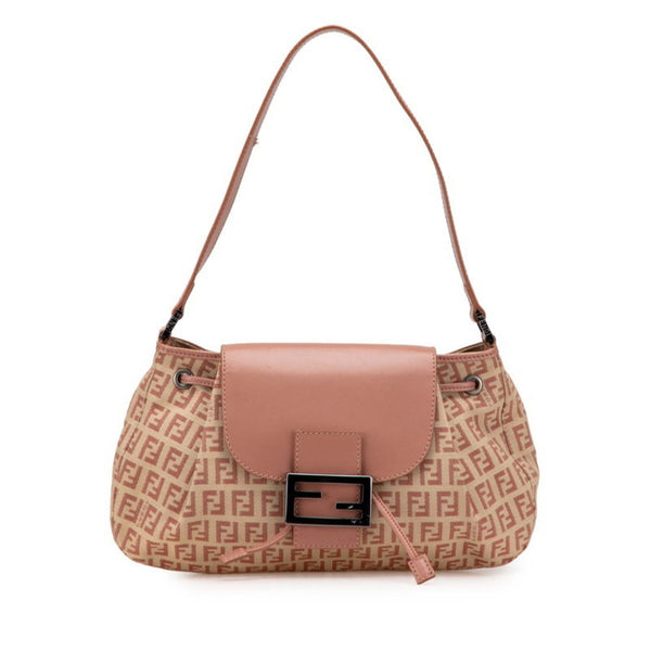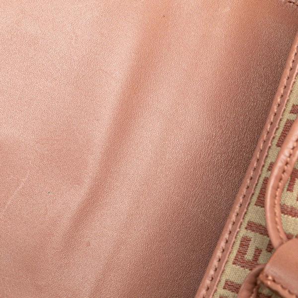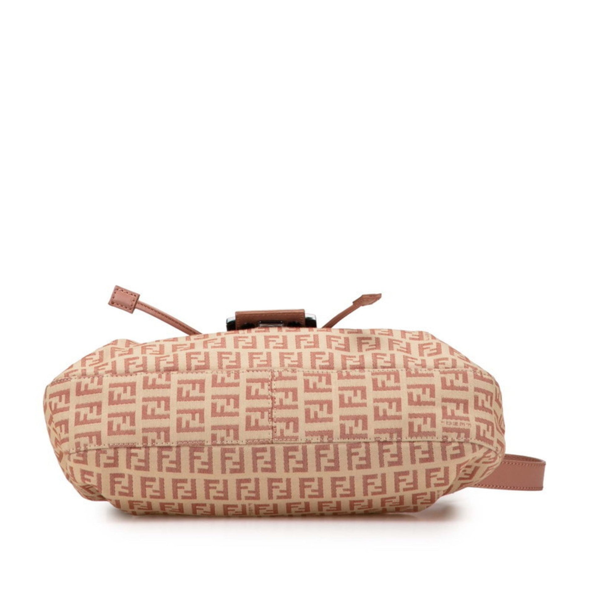 Fendi Zucchino One-Shoulder Bag Handbag 8BR282 Beige Pink Canvas Leather Women\'s FENDI