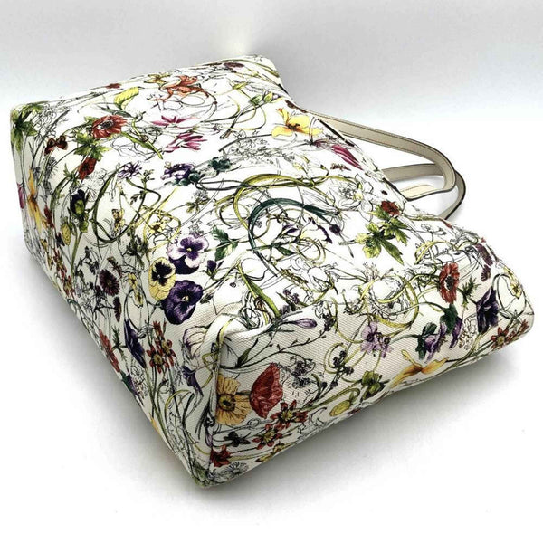 GUCCI 282439 Flora Tote Bag Handbag in White and Multicolor Canvas Leather for Women