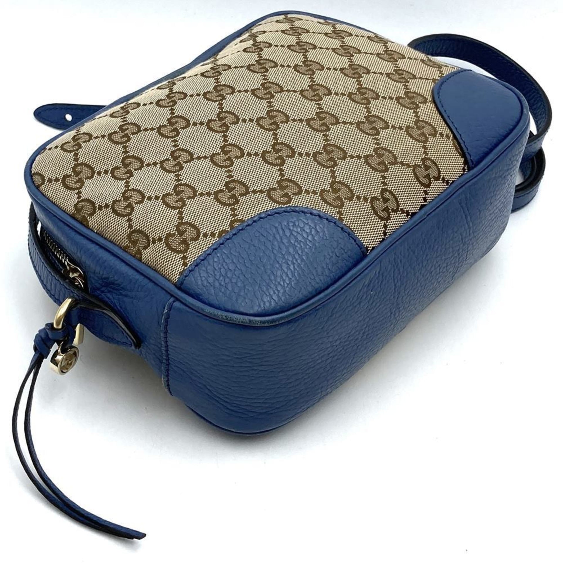 GUCCI 449413 Shoulder Bag GG Canvas/Leather Blue/Brown Women\'s