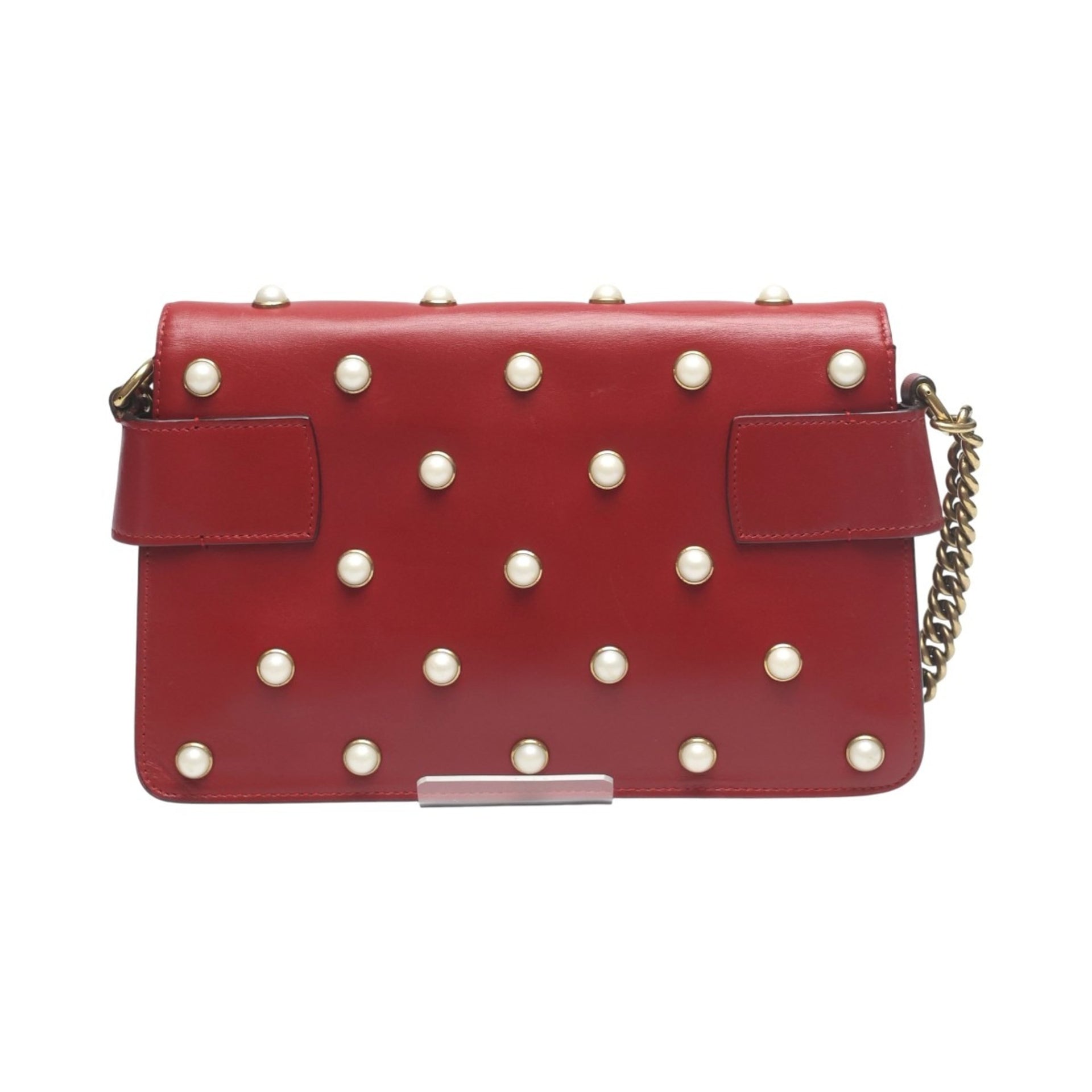 Gucci Broadway Pearl Bee Leather Handbag/Shoulder Bag, 2-Way Red, 453778