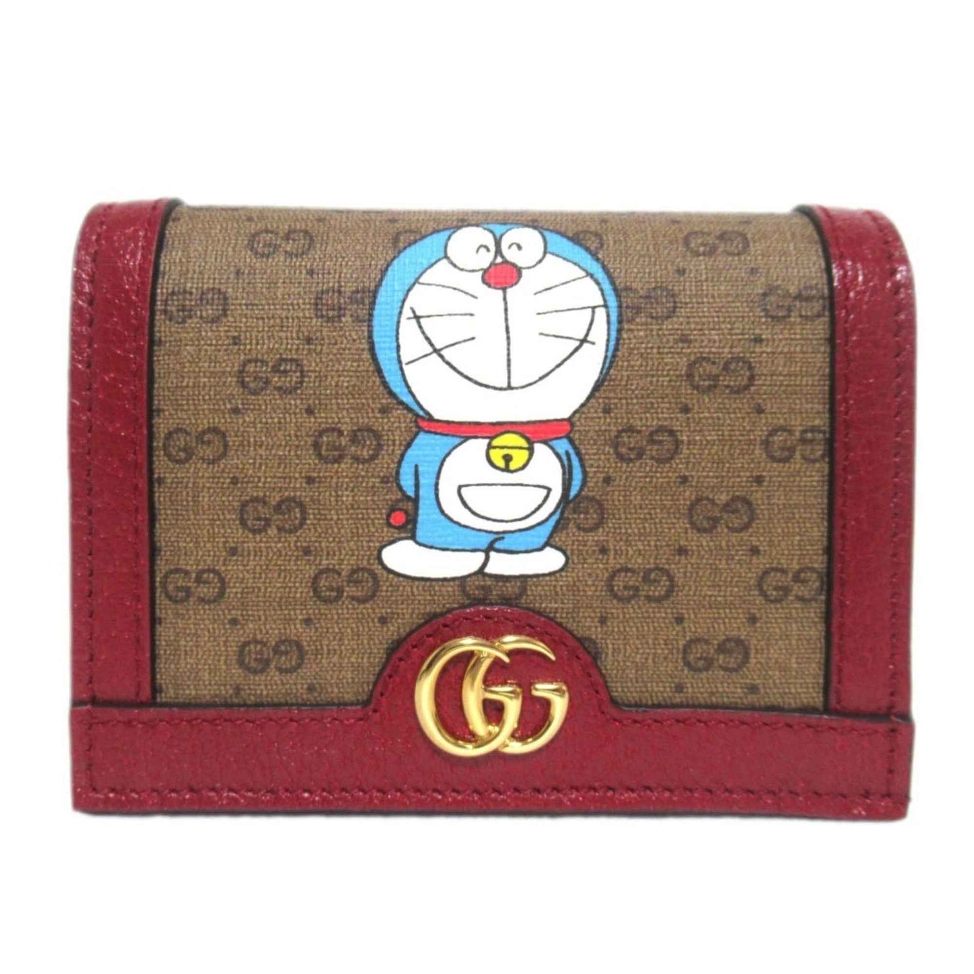 GUCCI Doraemon Collaboration Mini GG Supreme Compact Wallet 647788 Brown x Red Men\'s and Women\'s Luxs Pre-owned Brand Clothing