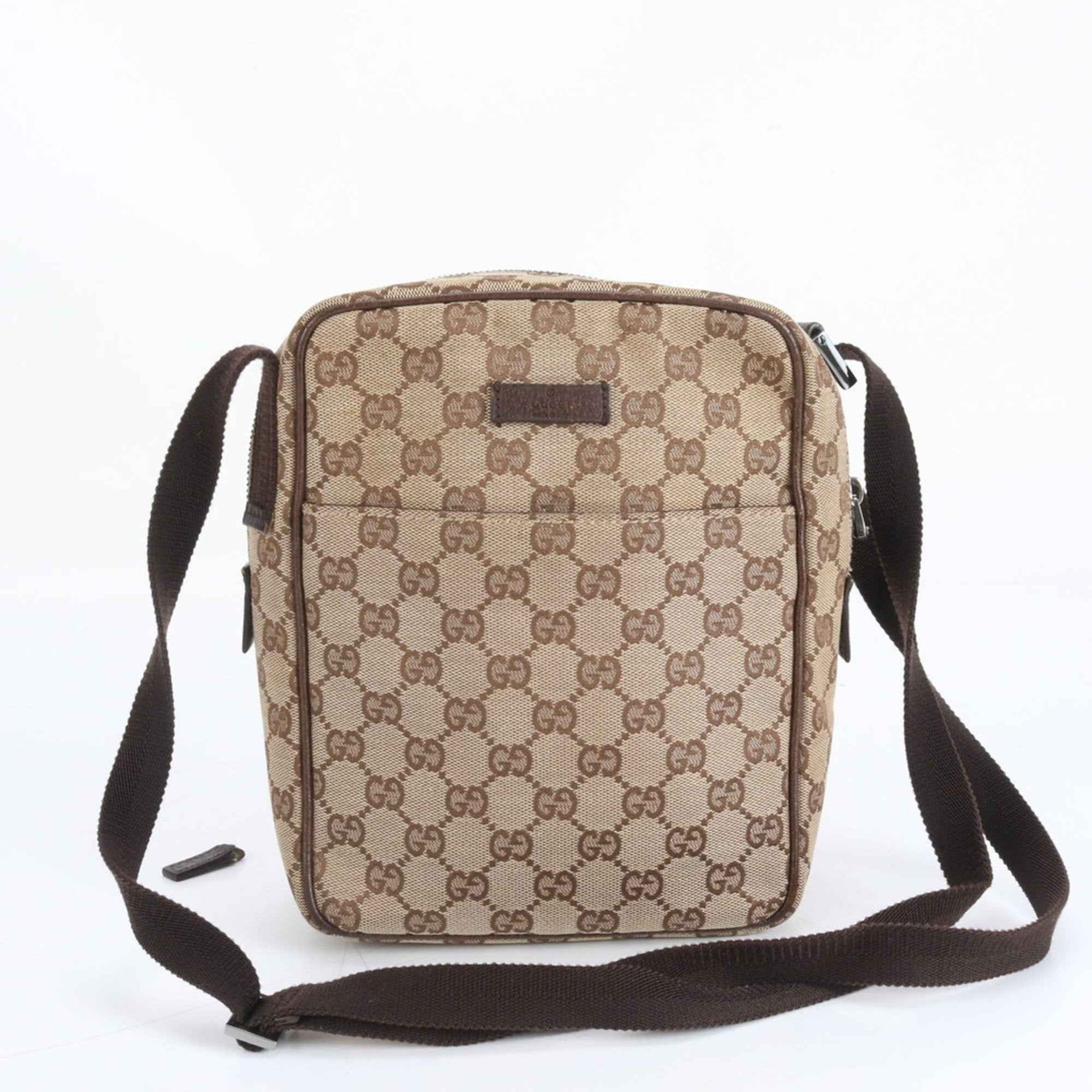 Gucci GG Canvas and Leather Messenger Shoulder Bag 122759 Brown Men\'s